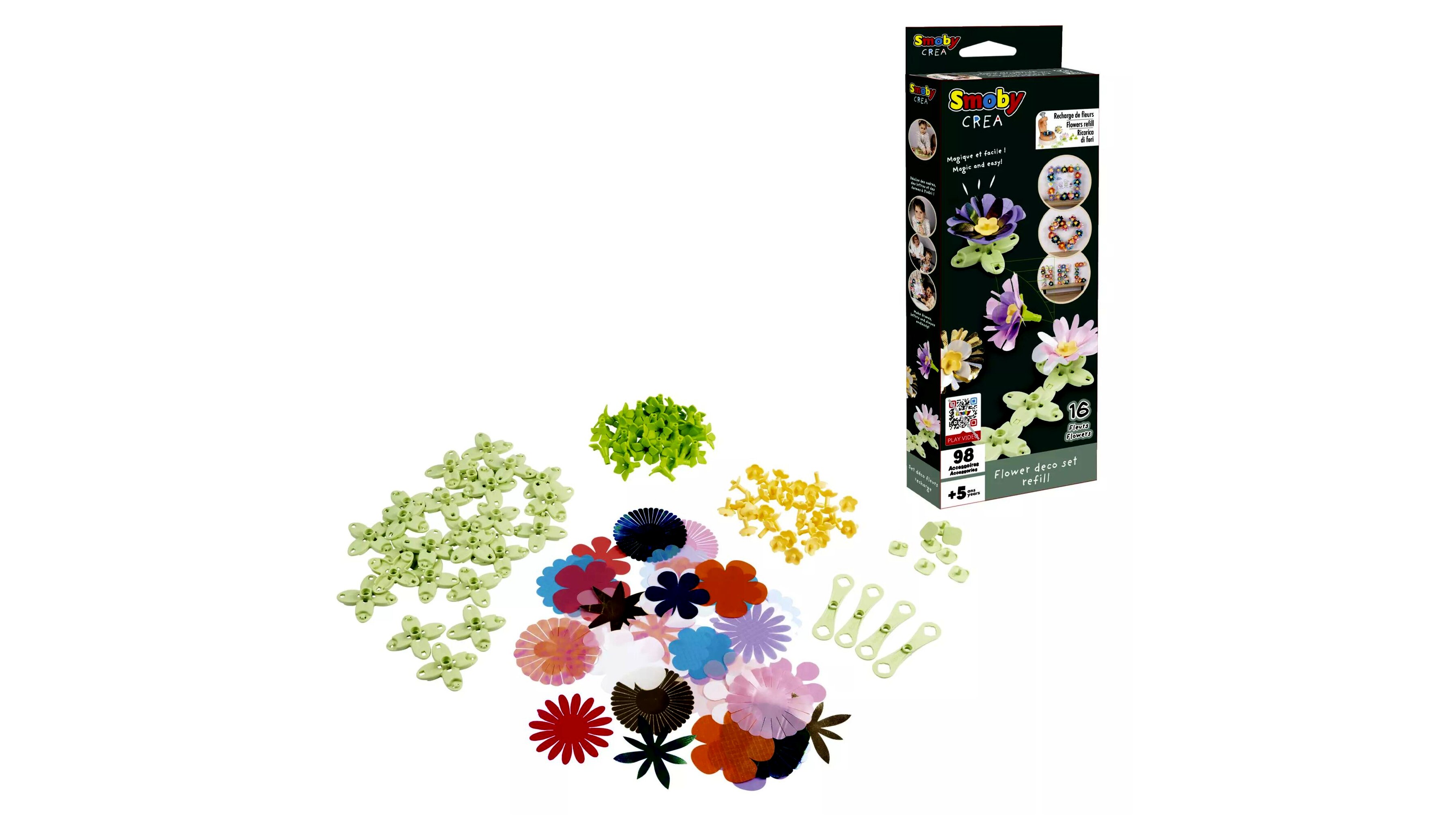 Fedezd fel a kreativitás világát ezzel a színes Smoby Crea: Virágkészítő utántöltő készlettel! A 98 db-os szett számtalan lehetőséget kínál a gyerekeknek, hogy saját egyedi virágokat és dekorációs tárgyakat készítsenek, kiegészítve korábbi Smoby Crea készleteiket.