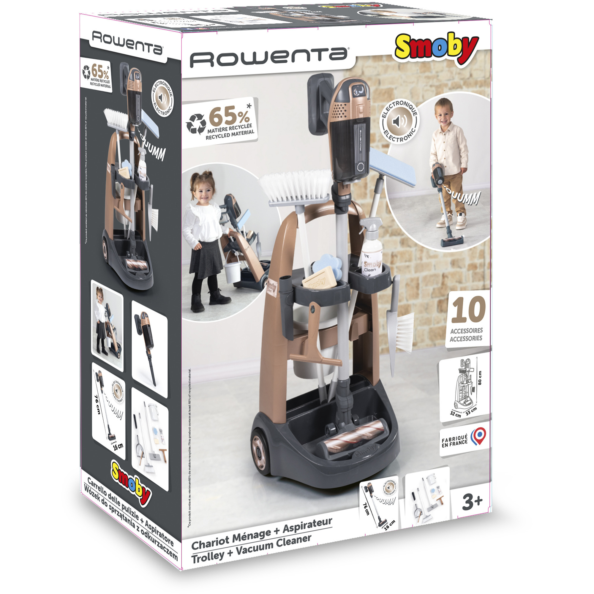 A gyerekek imádnak „ugyanazt csinálni”, mint a felnőttek – ezzel a részletgazdag takarító szettel pedig végre valódi élményben lehet részük. A készlet egy modern takarítókocsiból és egy akkus rúdporszívóból áll, amely megjelenésében és funkcióiban is a híres Rowenta X-Force Flex porszívót idézi.