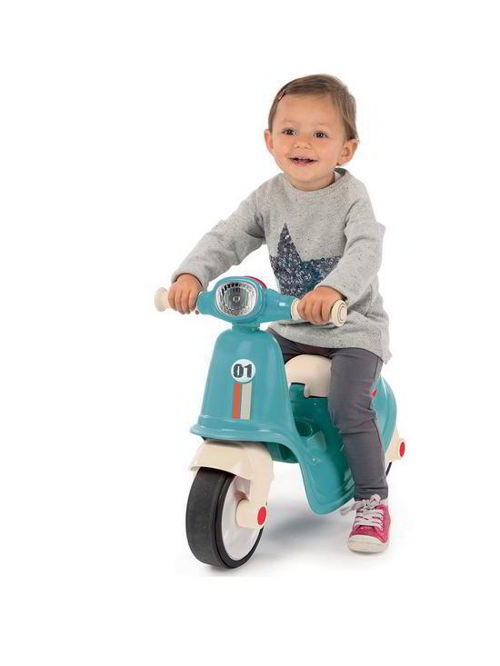 A motorozást nem lehet elég korán kezdeni! A Smoby lábbal hajtós, feltűnő kék színű csúcsrobogó, minden gyerkőc figyelmét felkelti. Ez a menő közlekedési eszköz mechanikus kulccsal "indul", így gyermekének a járgány szinte valósághű érzetet kölcsönöz.