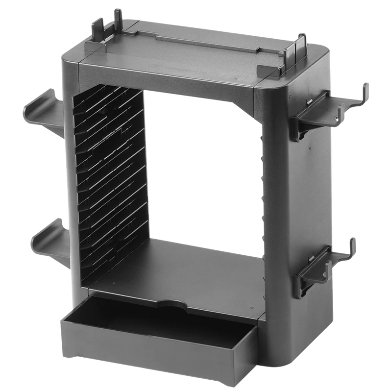 A toronyban 10 nyílás található kedvenc játékai számára, valamint egy tárolófiók a kábelek és egyéb tartozékok számára. Ezenkívül a torony teteje a Switch Dock alapja is.