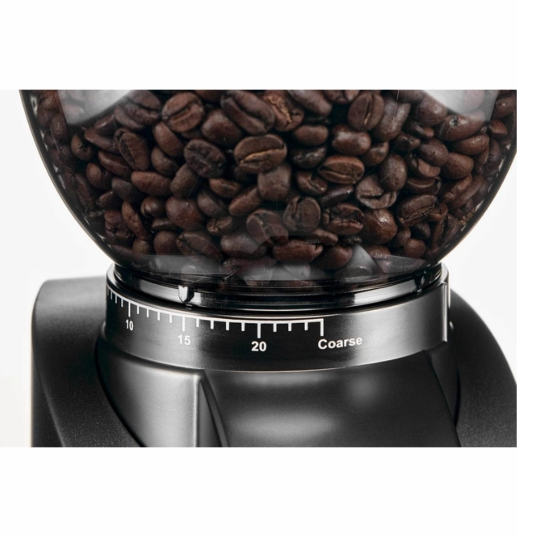 A kávédaráló 24 őrlési fokozattal rendelkezik a kávé eszpresszóvá történő szűréséhez, és edzett rozsdamentes acélból készült kúpos őrlőtárcsákkal rendelkezik, így a szemes kávé könnyedén megőrölhető. A fejlett ZeroStatic technológia kiküszöböli az őrölt kávé statikus feltöltődését, így kevesebb kávé vész el, és a munkalap tiszta és rendezett marad. A kávédaráló emellett aromabarát őrlésről is gondoskodik, az őrölt kávé mennyiségét pedig elektronikus időzítő szabályozza, majd végül egy gyűjtőedénybe gyűjti.