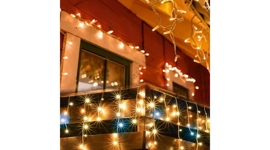 Ez a 10 méteres hosszúságú fényfüggöny 400 db melegfehér LED-del világít, amelyek meghitt, melegséget árasztanak. A különlegessége abban rejlik, hogy minden második füzérben hidegfehér LED-ek is villognak, így sziporkázó, dinamikus hatást keltenek, amely különleges hangulatot teremt. A fényfüggöny kül- és beltéri kivitelű, így akár az udvar, akár a nappali ékessége lehet.