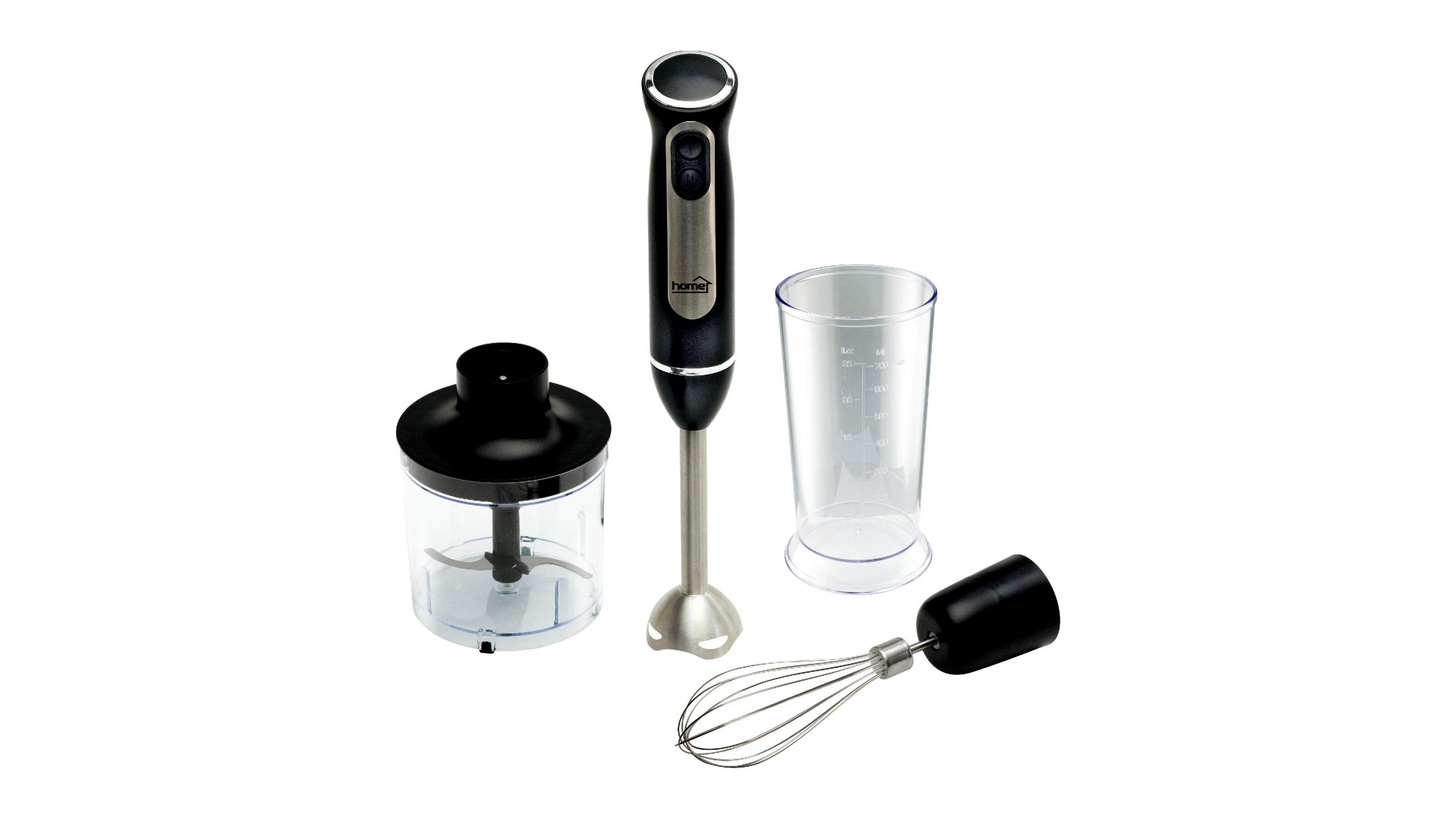 - Tartozék rozsdamentes mixer, mérőpohár, habverő és tálas aprító