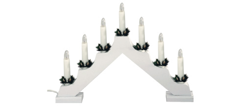 Ez a gyönyörű fehér gyertyapiramis igazi éke lesz minden ablaknak. Kiváló minőségű, fehérre festett lakkozott fából készült, amely kiemeli a fa természetes szépségét és eleganciáját. Az ív formájú kialakítás különleges harmóniát sugároz, miközben helyet ad a 7 db fehér csavaros izzó szolidan izzó fényének. A meleg fehér fény kellemes atmoszférát teremt, amely tökéletesen kiegészíti az ünnepi hangulatot.