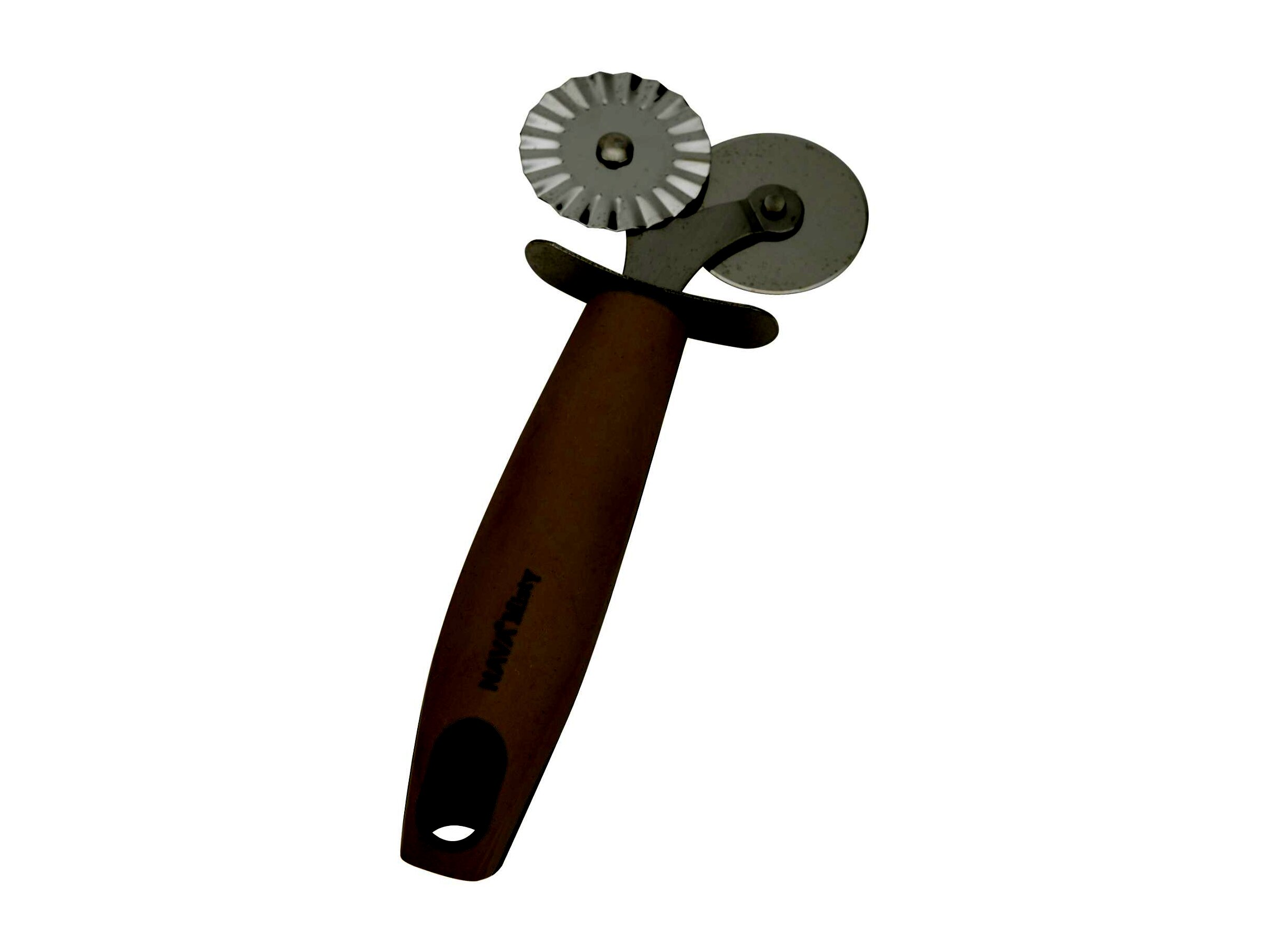 Ez a sokoldalú eszköz kettős vágókerékkel rendelkezik: egy sima az egyenes vágásokhoz és egy hullámos a cikk-cakk szélekhez, így a szerszám vágás közben egyidejűleg lezárja a pite vagy a ravioli széleit. Ideális tészta, sós rudak, grissini, édes vagy sós kekszek és sütemények készítésére, valamint piték díszítésére.