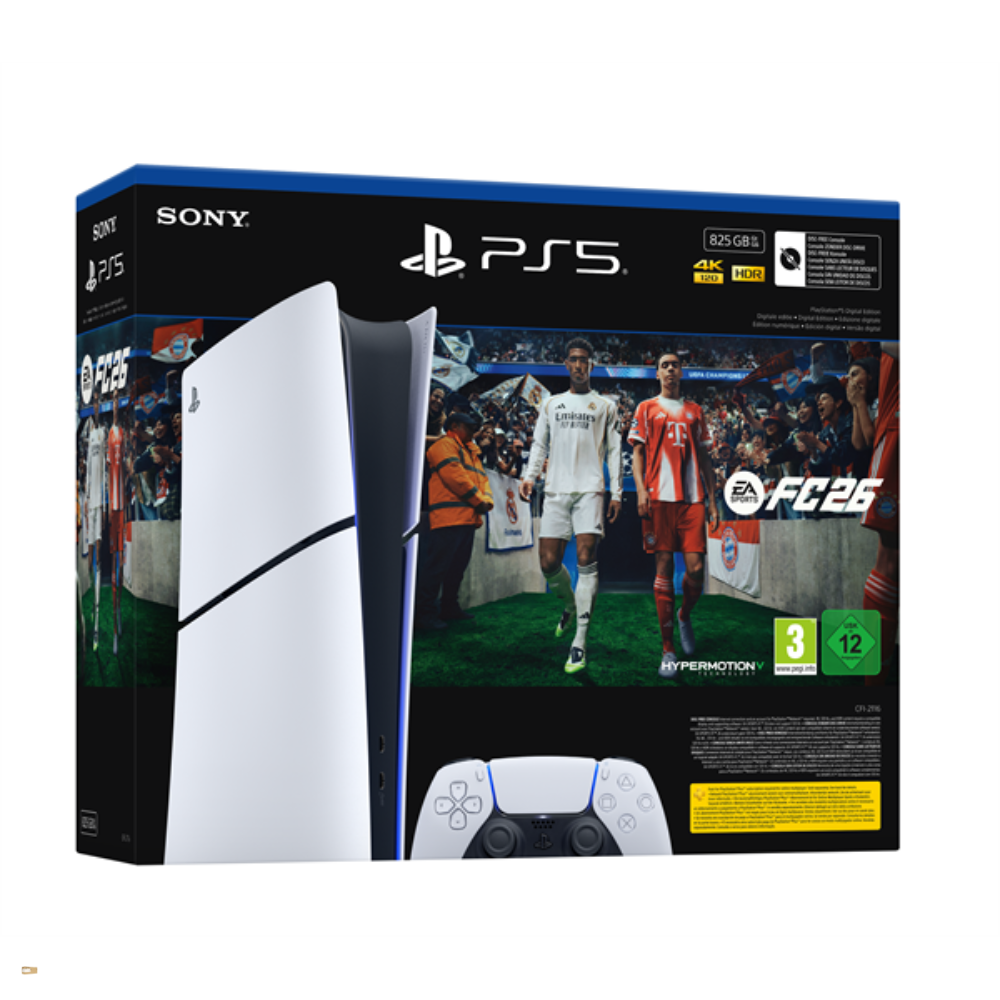 A PlayStation®5 digitális kiadás - EA SPORTS FC™ 26 csomaggal a játékosok olyan új világba léphetnek be, amely a villámgyors teljesítményével és a magával ragadó játékélményt nyújtó funkcióival újradefiniálja a konzolok világát. A karcsú, fehér kialakítású PS5 konzol és a FIFA 26 játék izgalmas kalandokat kínál a futballrajongóknak és gamereknek egyaránt.