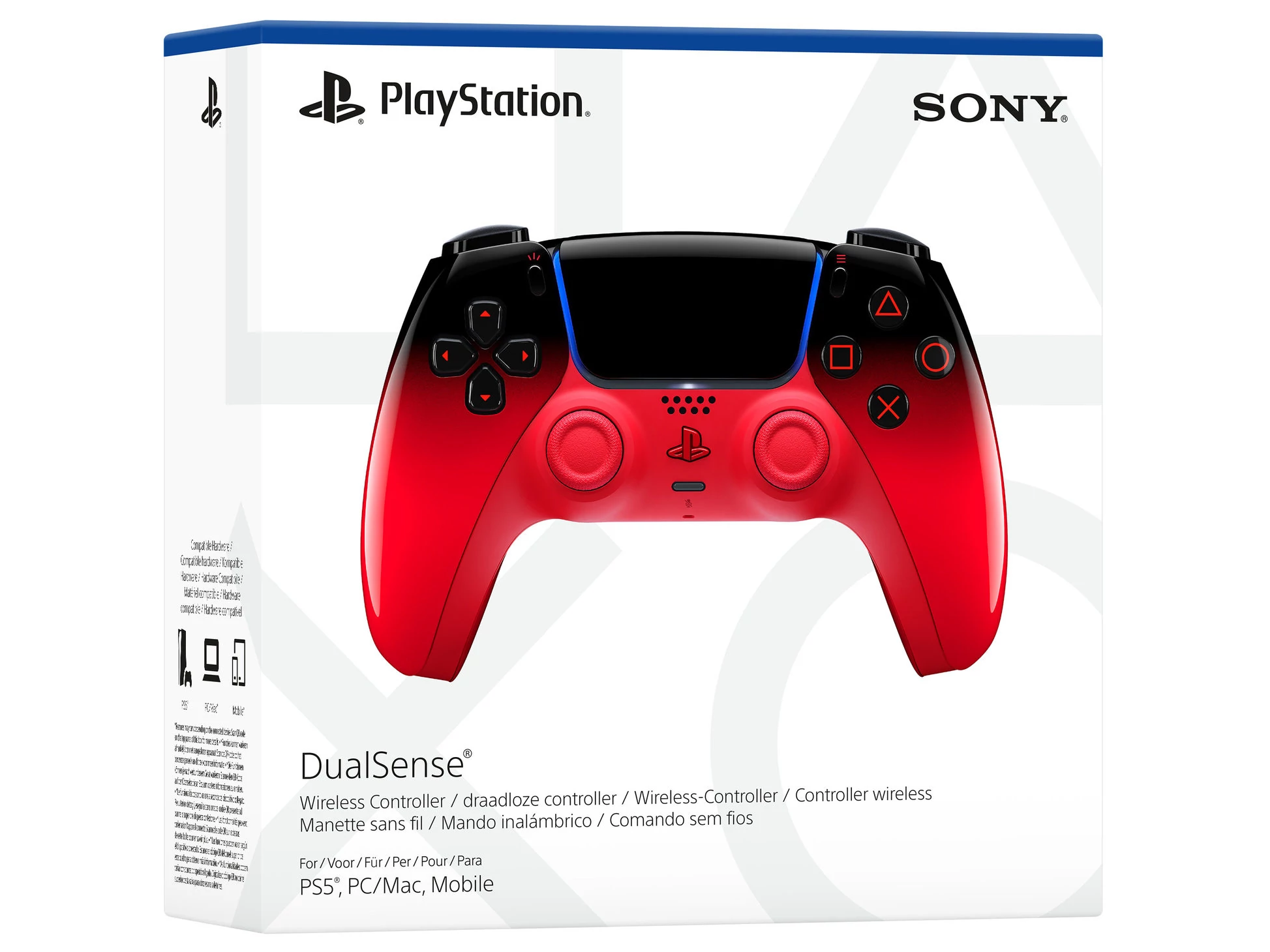 • A Sony dizájnfilozófiájának része, hogy a kontroller formai világa illeszkedjen a PS5 konzol futurisztikus megjelenéséhez, így a Techno Piros változat is egységes, modern látványt nyújt a teljes játéksarokban.