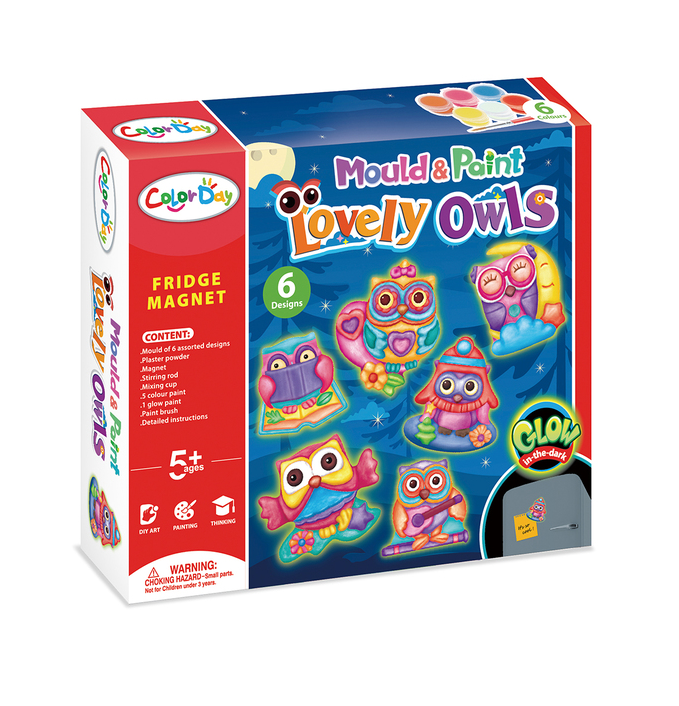 Díszítsétek ki hűtőszekrényeteket világító baglyos hűtőmágnesekkel! Most ti alakíthatjátok ki a mágneseket elejétől a végéig. Ebben a szettben kiöntő formát, gipszet, mágnest és festéket is találtok. Foszforeszkáló baglyok várják, hogy a hűtőszekrényeteket őrizhessék. A játék fejleszti az alkotói készséget, kreativitást és kézügyességet. A játékot 3 éves kor alatt nem ajánljuk.