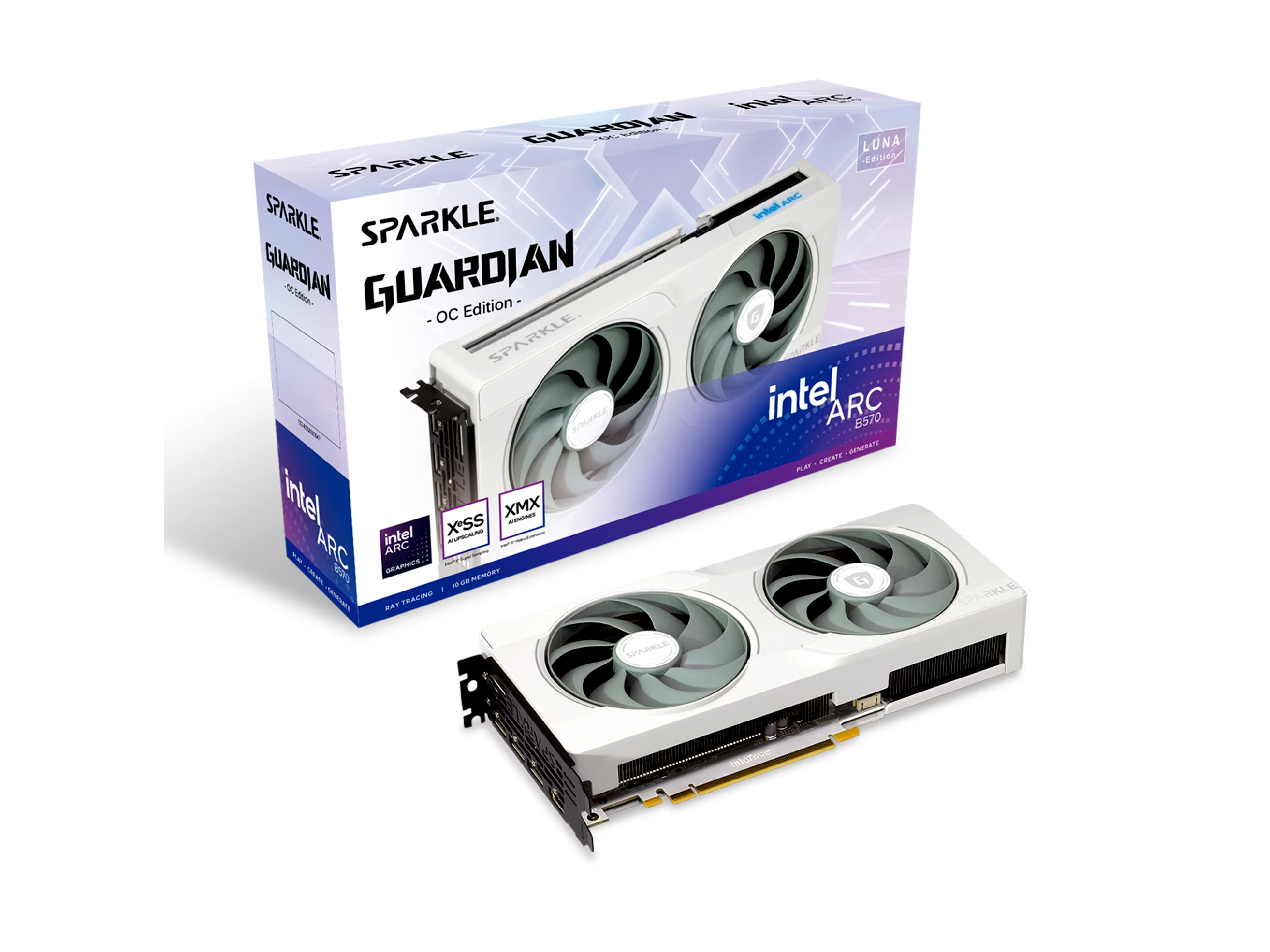 Az SPARKLE Intel® ArcTM B570 GUARDIAN OC videókártya kiváló választás azok számára, akik magas felbontású játékélményre vágynak. Az Intel XeSS mesterséges intelligencia alapú felbontásnöveléssel, ray tracinggel és 8K médiatámogatással rendelkező grafikai megoldás felgyorsítja az alkotást és szerkesztést az Intel AI Playground révén.