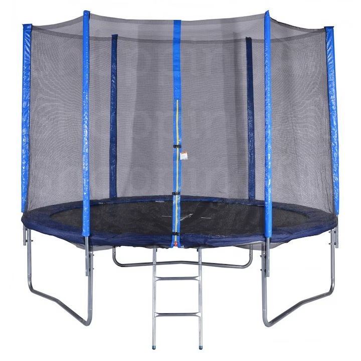 🛡️ Biztonságos kialakítás – a trambulinhoz tartozik egy létra és egy védőháló, amelyek lehetővé teszik, hogy kicsik és nagyok egyaránt biztonságosan ugrálhassanak. A felállításhoz két felnőtt szükséges.