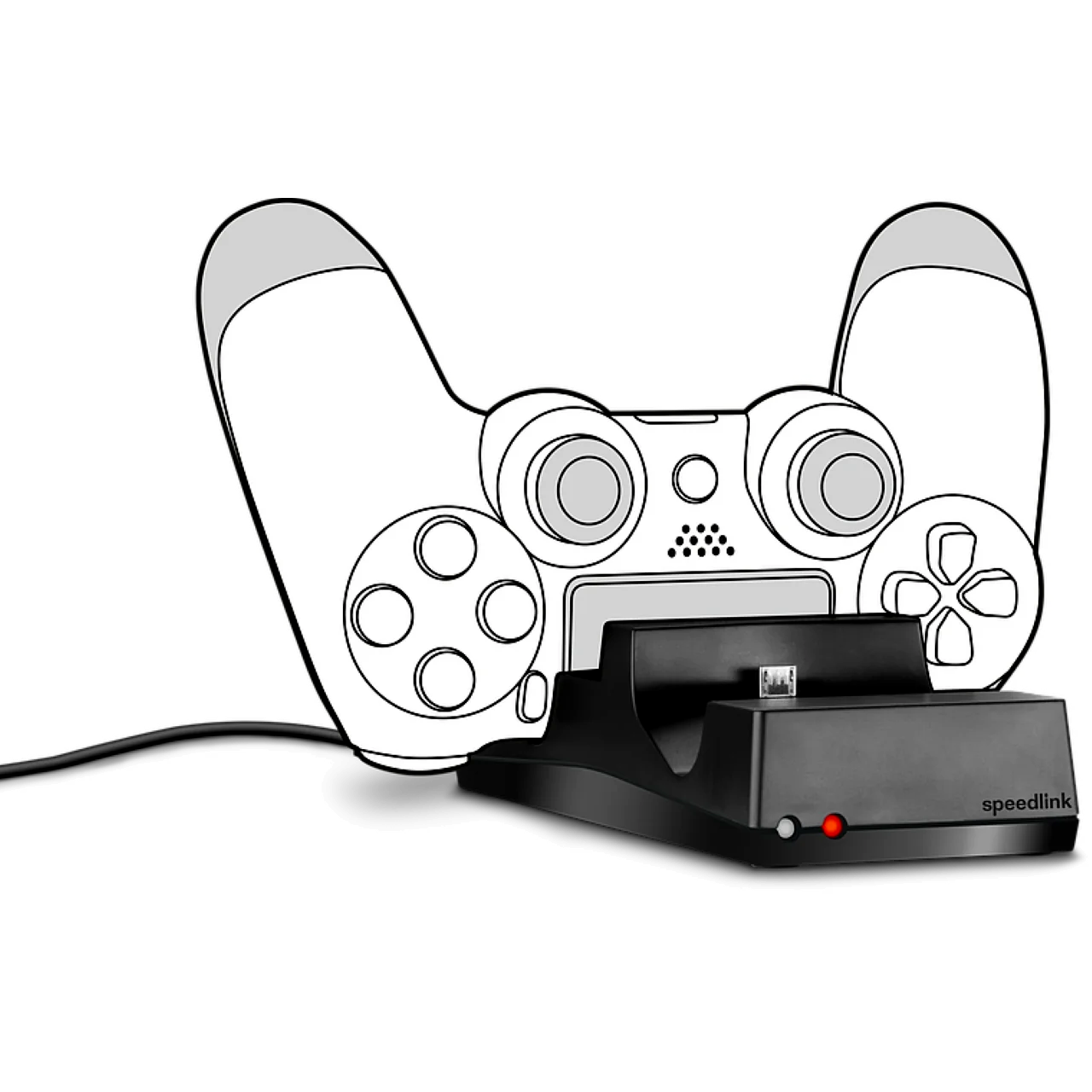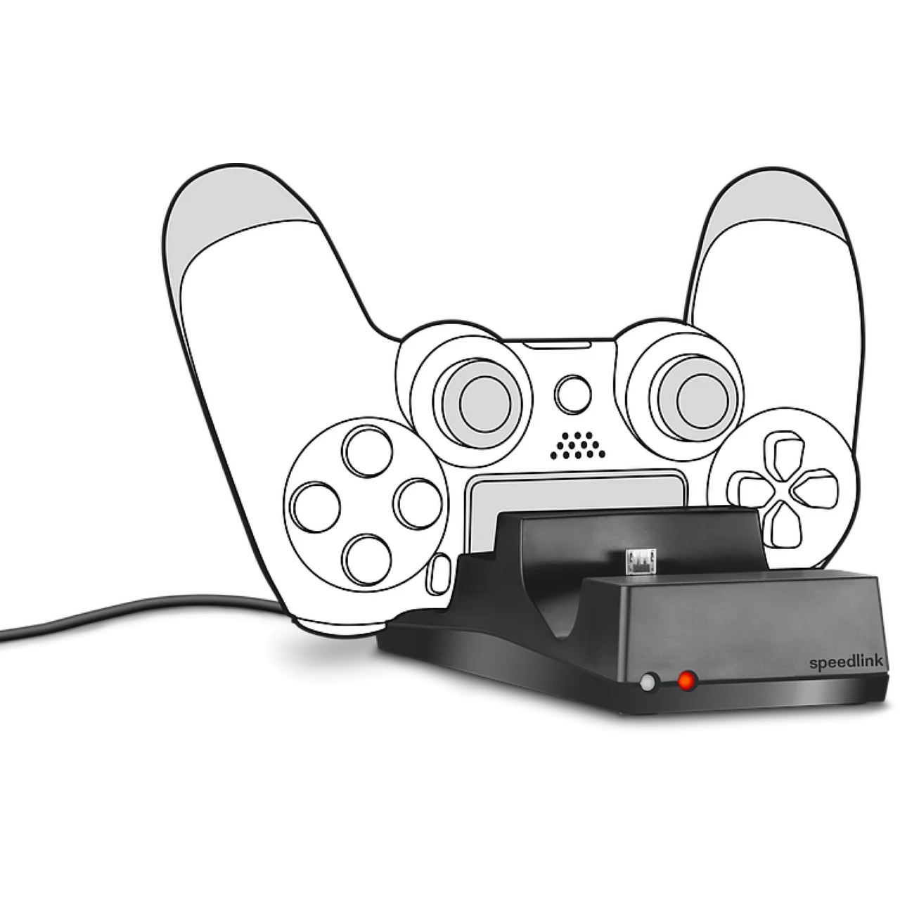 A kompakt, letisztult kialakítású Speedlink Jazz PS4 töltőállomás segítségével egyszerre két DualShock 4 kontrollert tölthetsz gyorsan és biztonságosan. Elég egyetlen szabad USB-port a PS4 konzolon, PC-n vagy egy USB-s hálózati adapteren, és az irányítók mindig rendezett, stabil helyen, játékra készen várnak.