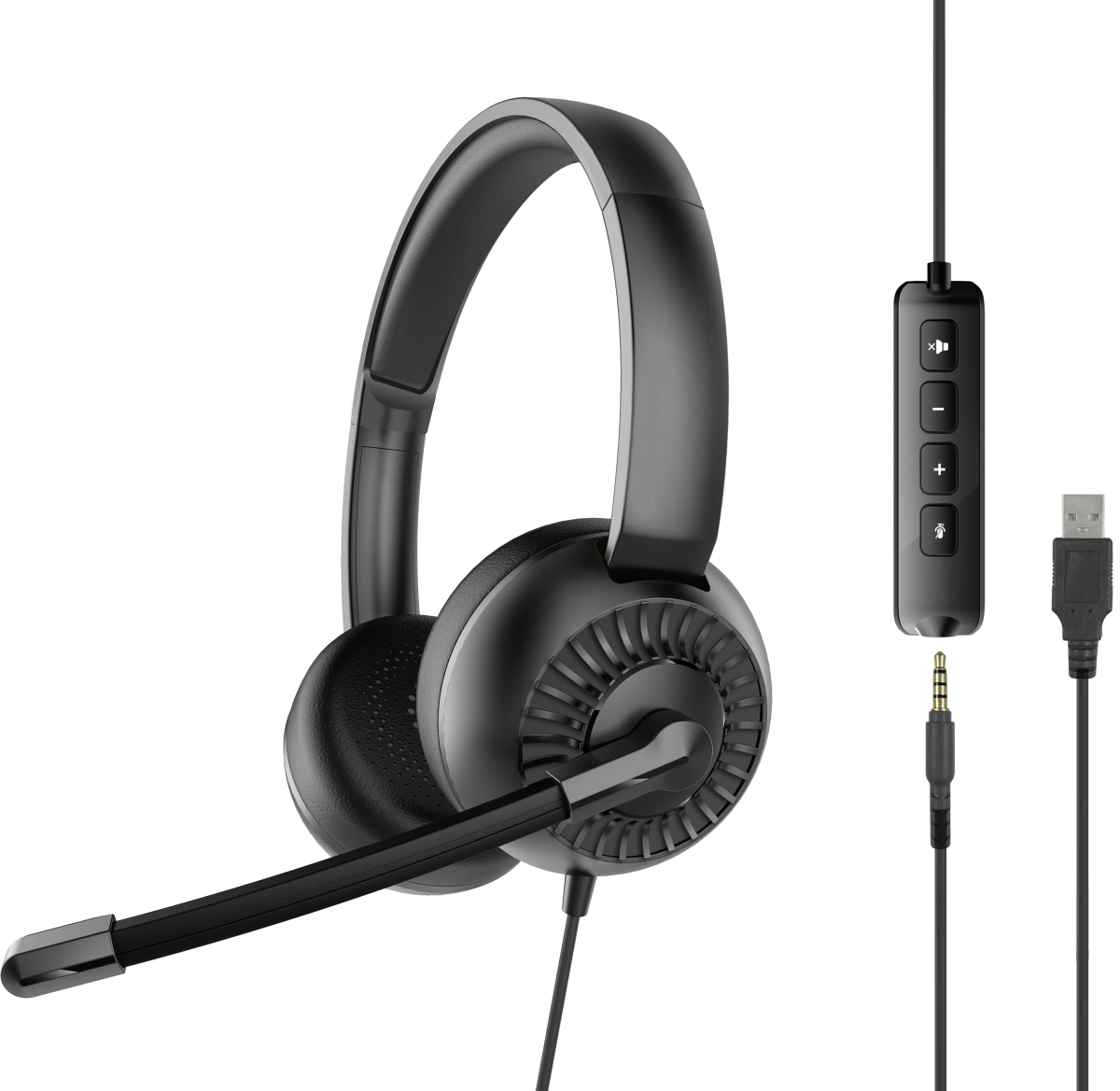 • USB-A adapterrel – stabil, digitális hangkapcsolat PC-hez vagy laptophoz, gyors, driver nélküli használat az irodában.