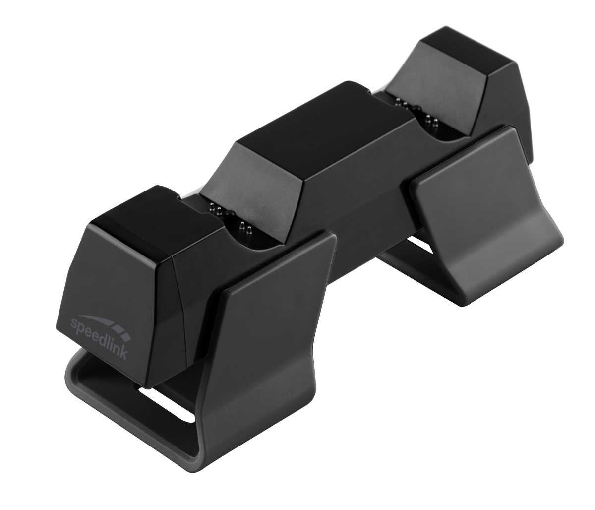 Dobd fel PlayStation 5 gamer sarkod egy letisztult, fekete töltőállomással, amellyel két kontrollert tölthetsz egyszerre – gyorsan, biztonságosan és rendezetten. Nem kell többé kábelekkel bajlódnod, csak dokkolod a kontrollereket, és már kész is a töltés.
