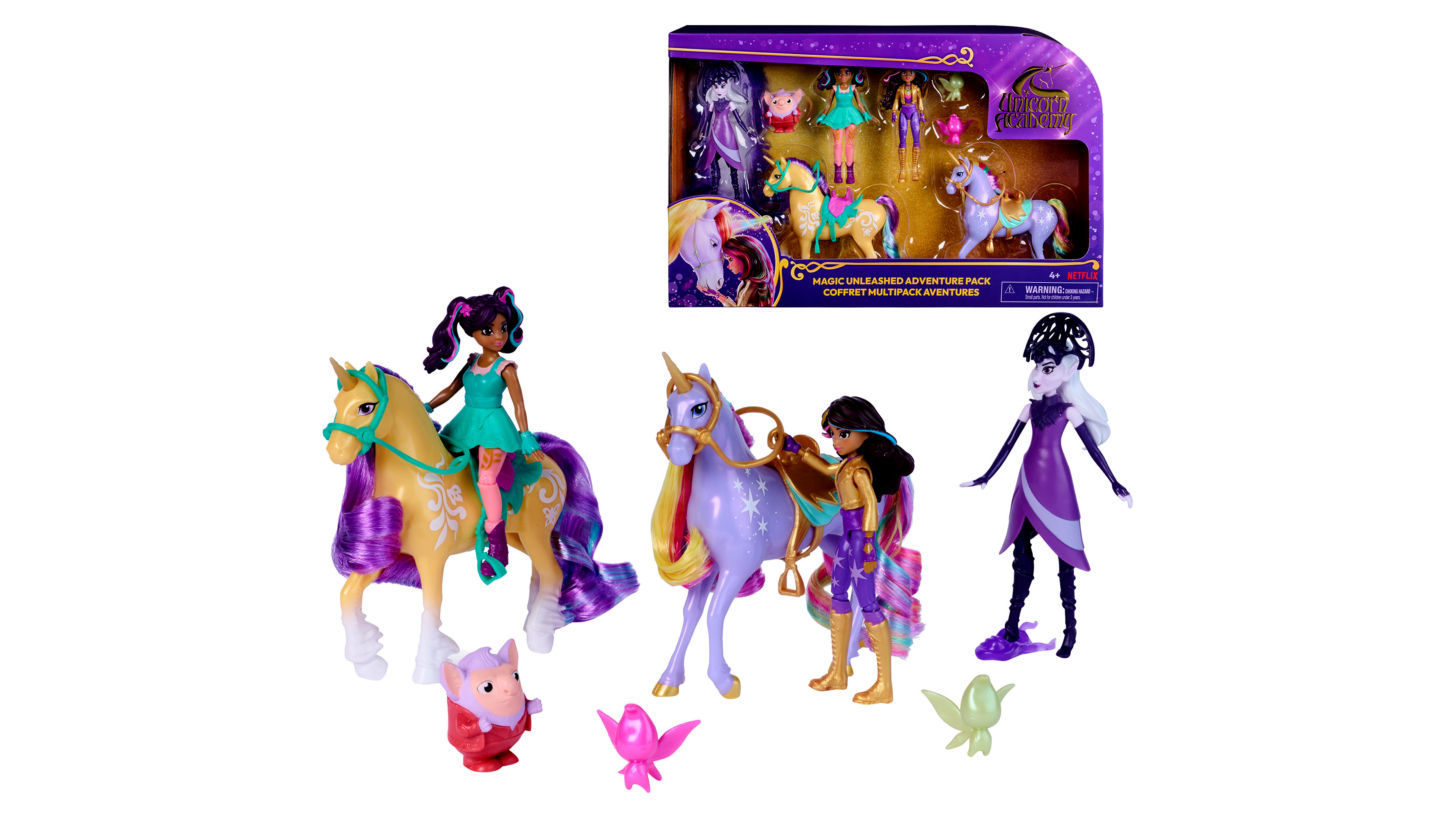 - Unikornisok kiegészítőkkel: Wildstar és Leaf levehető nyereggel és kantárral rendelkeznek, ami még élethűbbé teszi a lovaglós játékokat.