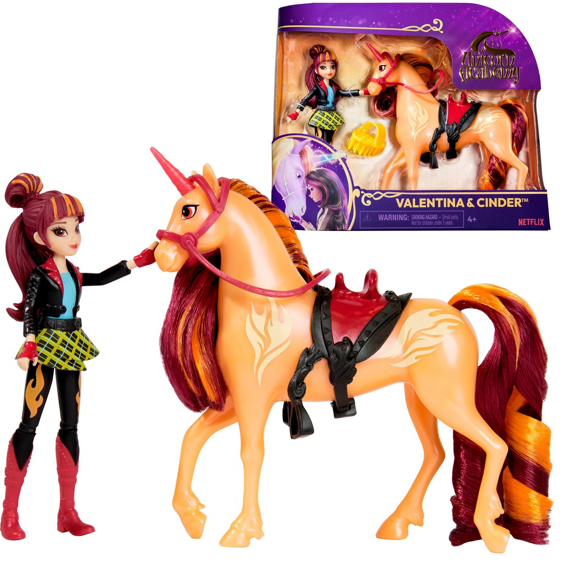 A szettben található Valentina baba hét mozgásponttal rendelkezik, ami lehetővé teszi számára, hogy különféle pózokba állítható legyen. A baba könnyedén felülhet tűz-unikornisára, Cinderre, aki selymes sörénnyel és farokkal rendelkezik - tökéletes fésülésre, fonásra és díszítésre.