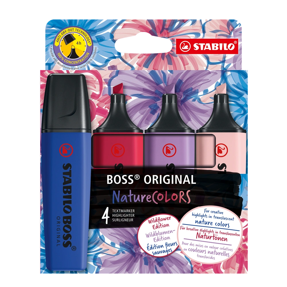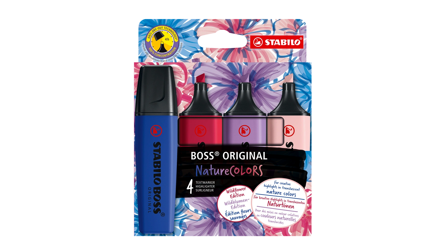 Ez a 4 darabos készlet a Naturecolors Wildflowers Edition sorozat része, amely a vadvirágok finom, természetes színvilágát ülteti át a papírra. A külsejében ikonikus, belsejében megbízható szövegkiemelő ergonomikus formával és kiváló minőségű tintával segíti a pontos, tiszta és tartós kiemelést.