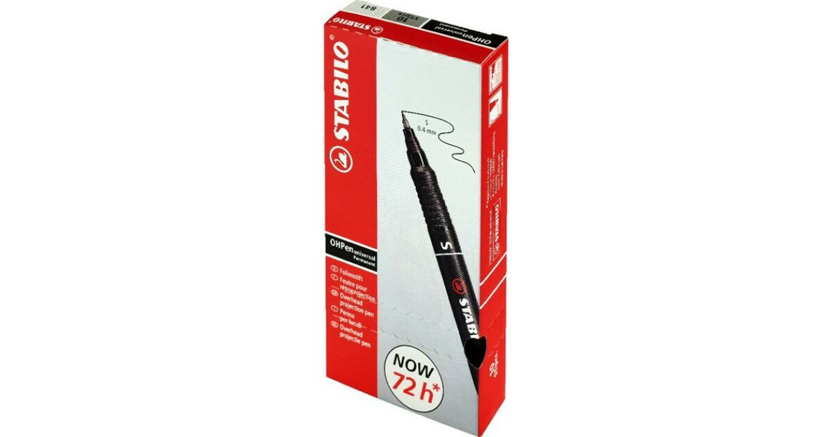 A Stabilo OHPen 841"S" filctoll különleges kialakításának köszönhetően szinte minden sima felületen használható. Légáteresztő szeleppel ellátott kupakja gondoskodik arról, hogy a toll hosszú ideig ne száradjon ki még kupak nélkül sem, akár 72 órán keresztül is használható marad. A 0,4mm vastagságú vonal pedig precíz és esztétikai szempontból is kifogástalan írást tesz lehetővé.
