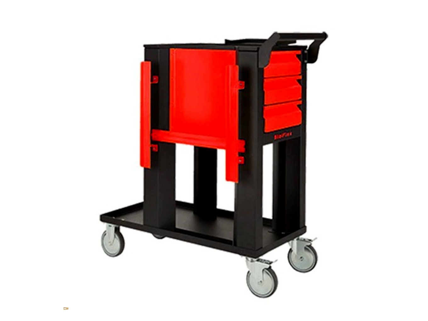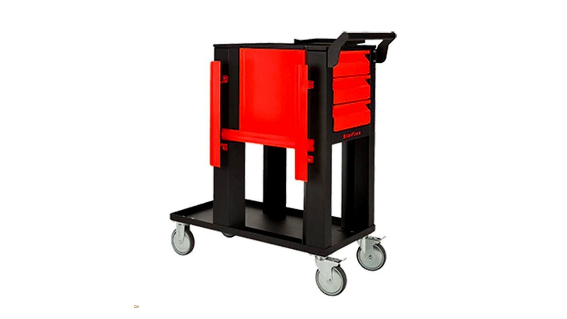 A szerelőkocsi váza nagy szilárdságú acélból készül, mely hosszú távon is ellenáll a mindennapos műhelyhasználatból adódó igénybevételnek. A három piros fiók optimális kompromisszumot nyújt a tárolókapacitás és a kompakt külső méretek között, így kisebb műhelyekben is könnyen elhelyezhető.
