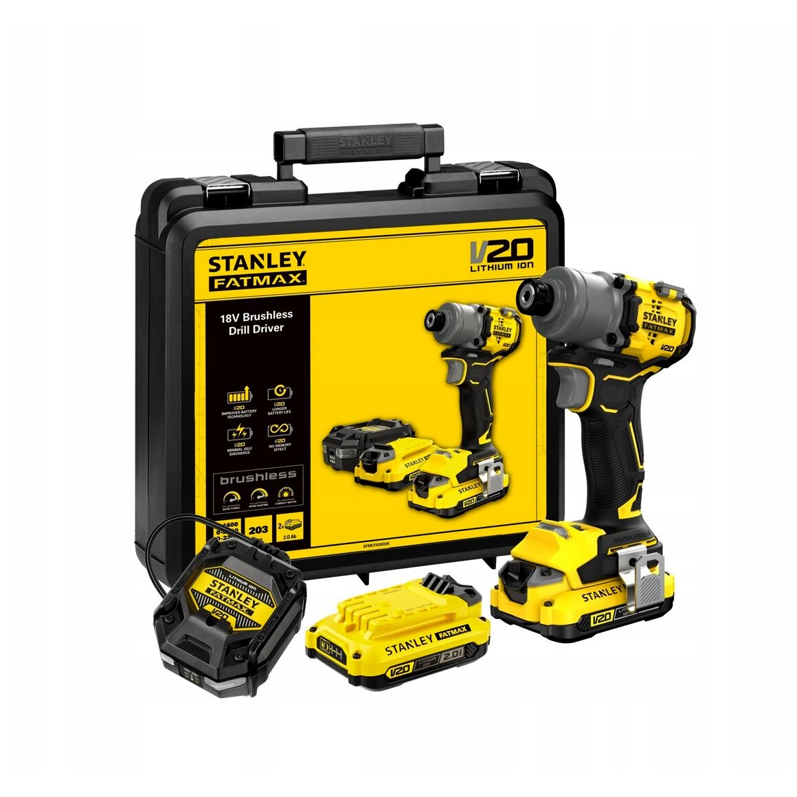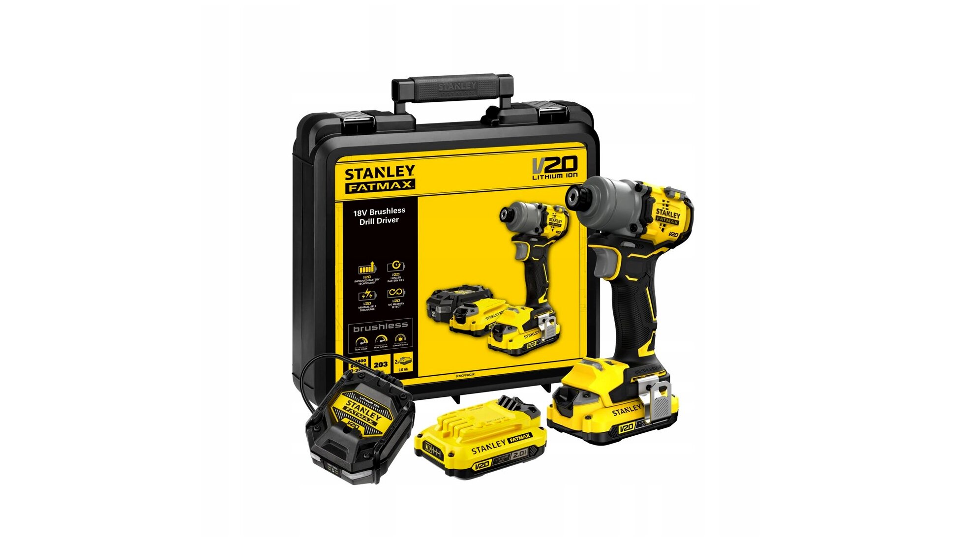 A V20 18 V-os lítium-ion platform előnye, hogy az akkumulátorok több, azonos rendszerű Stanley géppel is kompatibilisek. Így a meglévő akkukkal használhat fúró-csavarozót, fűrészt, csiszolót vagy más akkus gépeket is, csökkentve a szükséges akkumulátorok és töltők számát. A korszerű lítium-ion technológia alacsony önkisülést, memóriaeffektus-mentes működést és stabil teljesítményt kínál.