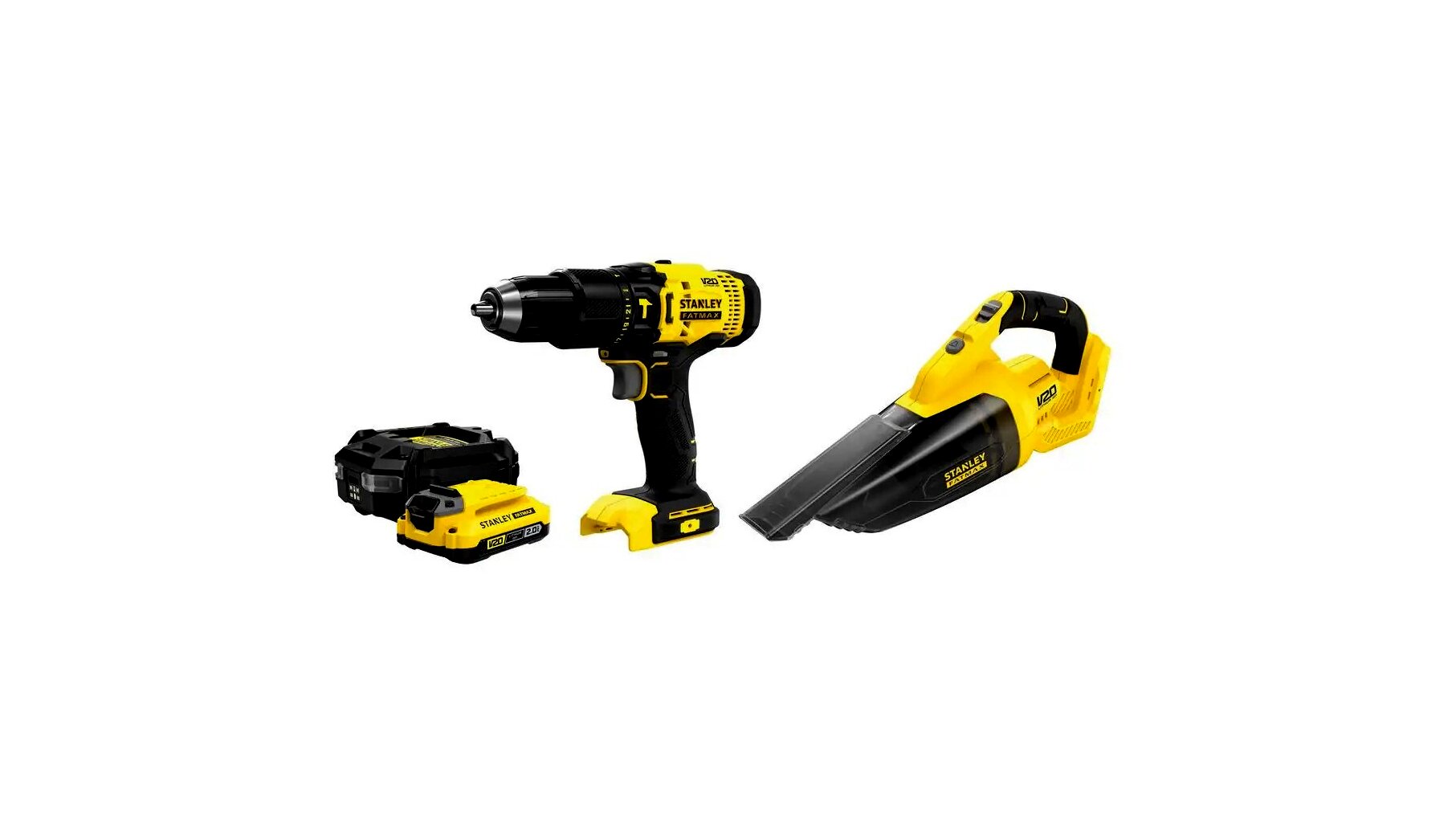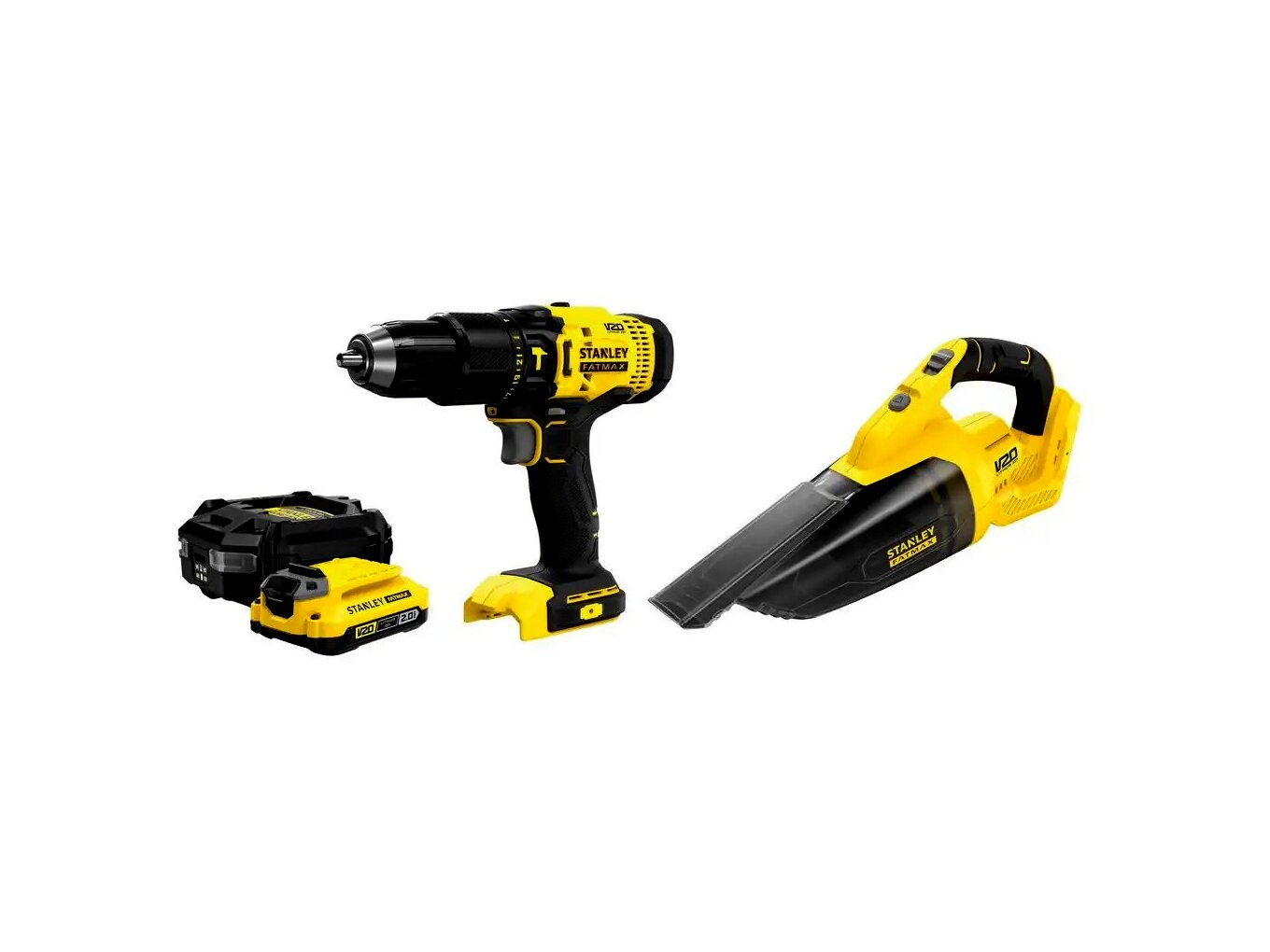 Stanley SFMCK219D1 Akkus Ütvefúró-csavarozó + kézi porszívó + 1x 2 Ah akku - Fekete/Sárga
