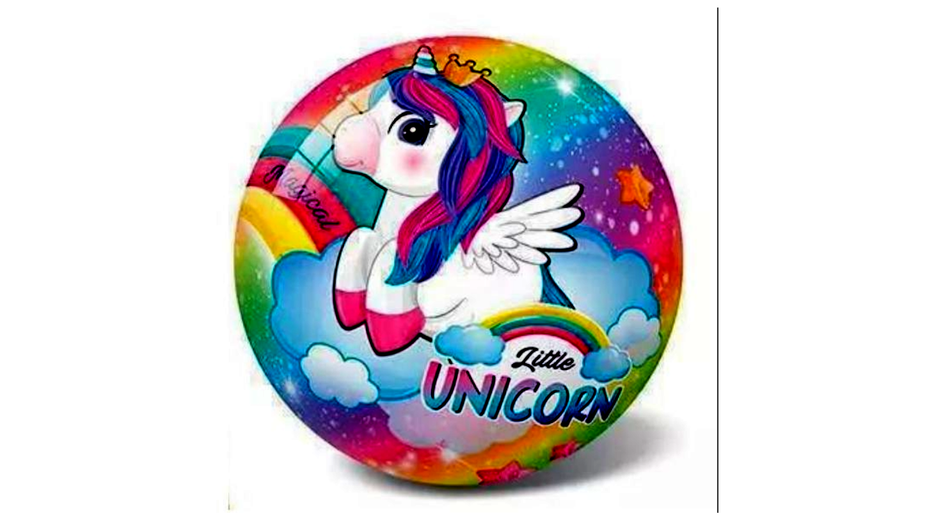 Labdázz kedvedre az unikornis mintás gumilabdával! A labda elsősorban kisebbeknek készült, de tökéletes eszköze lehet bármilyen labdajátéknak! A labda mérete: 23 cm.