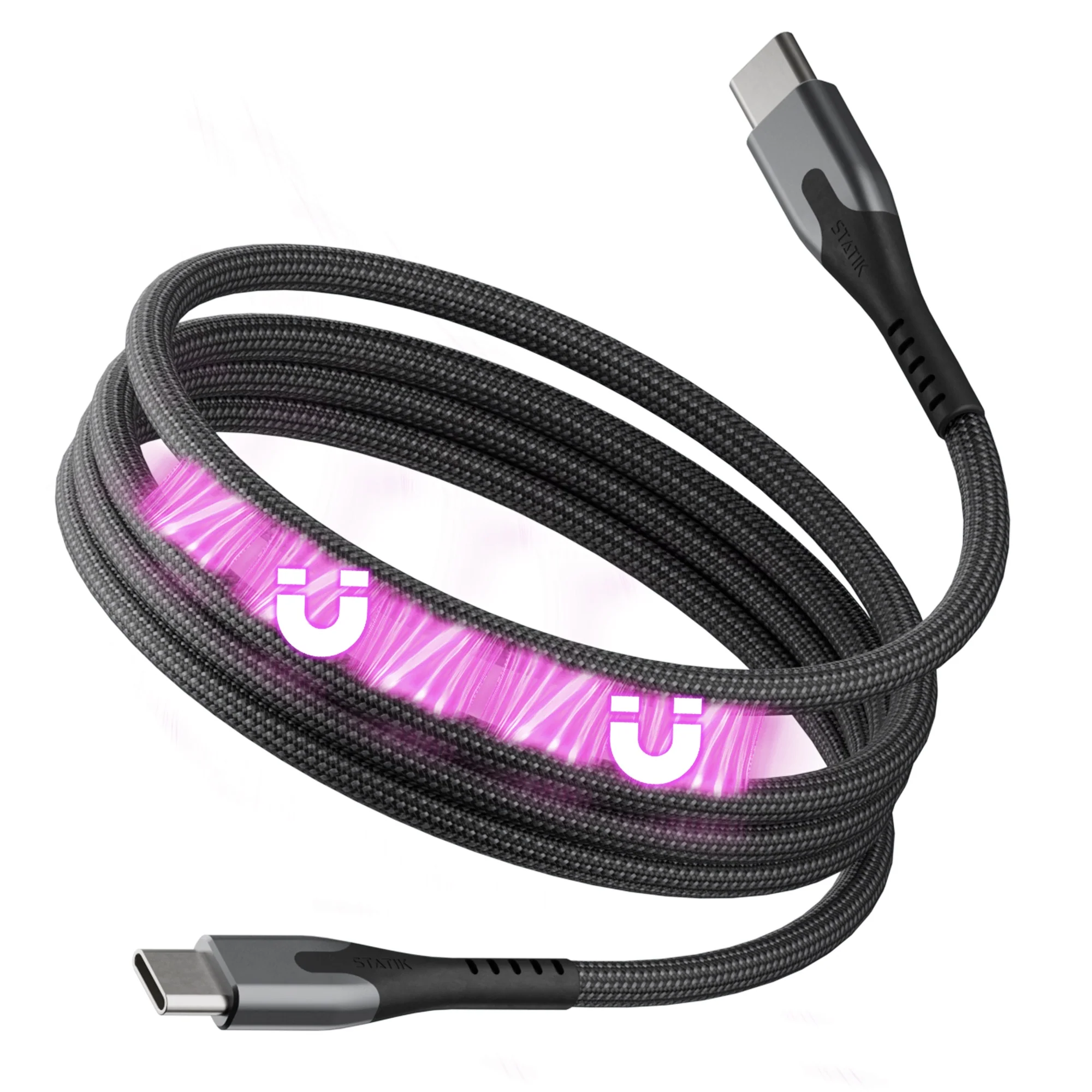 A STATIK MagStack Pro egy kiváló minőségű, 2 méteres hosszúságú USB-C apa-apa adat- és töltőkábel, amely ideális választás okoseszközeid gyors és hatékony töltésére, illetve adatátvitelre. A kábel különlegessége a tangle-free kialakítás, amely garantálja, hogy soha többé nem kell a csomók kibogozásával bajlódnod.