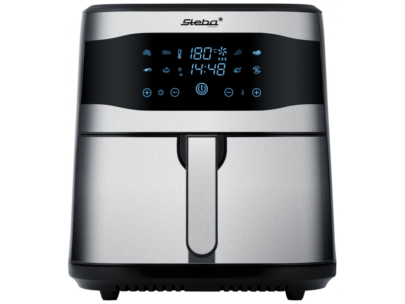 A Steba HF 8000 Family fritőz használatát rendkívül egyszerűvé teszi a hőmérséklet-szabályozó és az időzítő. A felhasználók választhatnak a 8 automatikus program közül is, melyek között megtalálható a sült krumpli, csirke és hal program is. A tapadásmentes 8 literes sütőkosár elegendő helyet biztosít nagyobb adagok elkészítéséhez is.