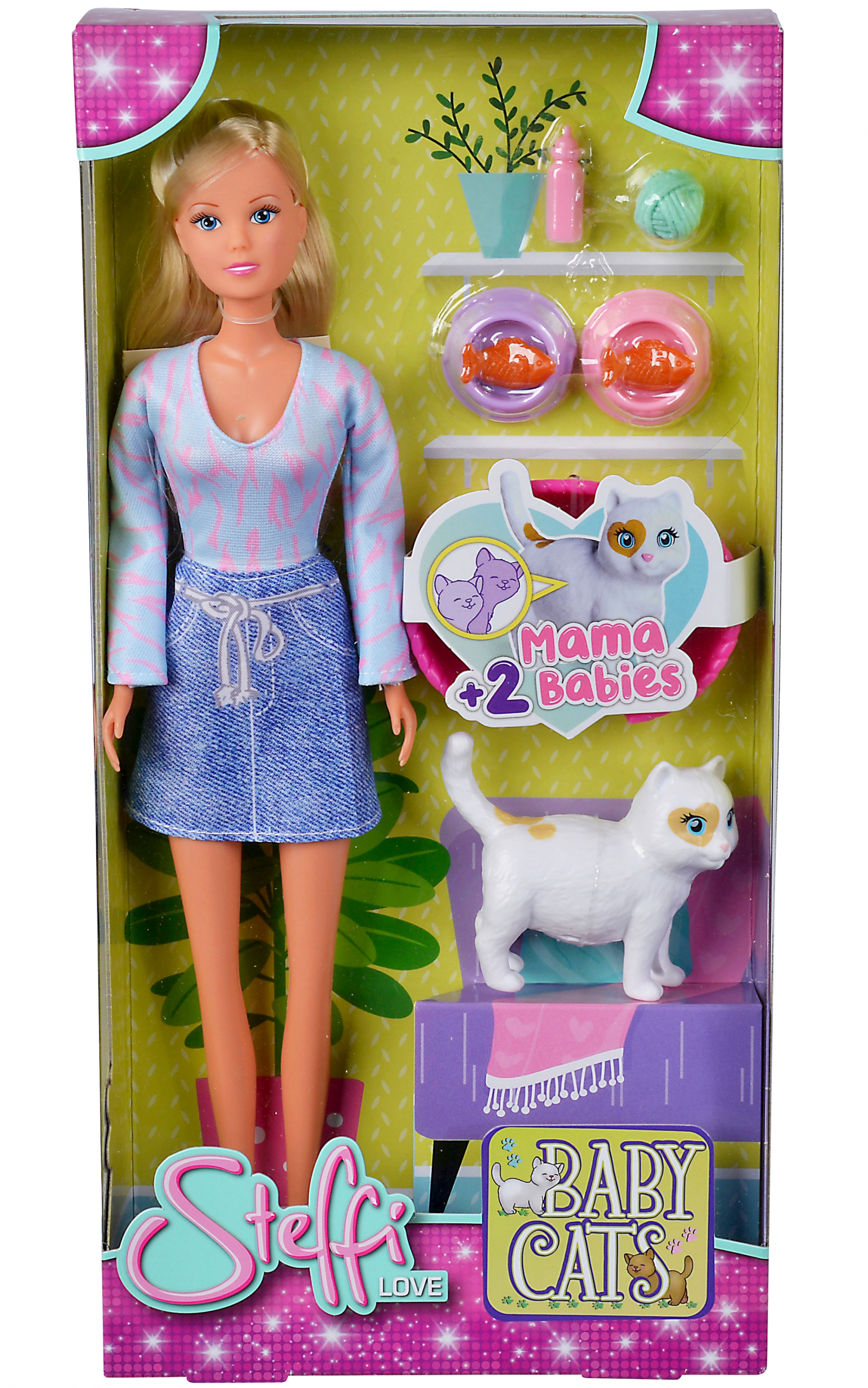 Steffi Love-nak feltűnt, hogy kiskedvence nem ment haza éjjel, azonban csak hetekkel később tudta meg, miért nem. Az állatorvos hamar kiderítette, hogy a cica anyai örömök elé néz, Steffi pedig határtalan örömmel fogadta a hírt. Be is vásárolt a hamarosan érkező kiscicáknak: a szettben található két etetőtál eledellel, cumisüveg, gombolyag és persze Steffi macskája, akinek pocakjában két pici cica lakik, hogy a gyerekek eljátszhassák az élet születésének csodáját.