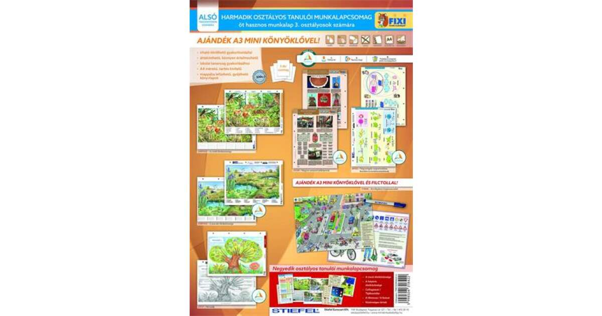 A Fixi tanulói munkalapok a magyar oktatásban széleskörűen használt falitérképek és oktatótablók kicsinyített másai, nemcsak az órai munkát, hanem az otthoni gyakorlást is megkönnyítik.