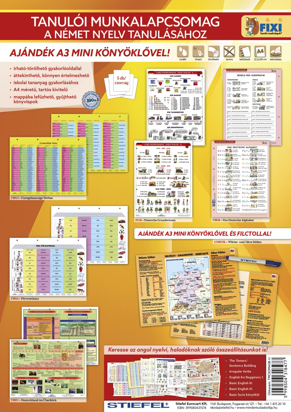 A Fixi tanulói munkalapok a magyar oktatásban széleskörűen használt falitérképek és oktatótablók kicsinyített másai, nemcsak az órai munkát, hanem az otthoni gyakorlást is megkönnyítik.