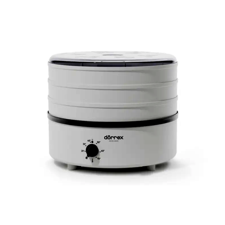Ez a gyümölcsaszaló könnyen tisztítható műanyag házzal rendelkezik, és lehetővé teszi a hőmérséklet szabadon állítható szabályozását, valamint aktív meleg levegő keringetést.