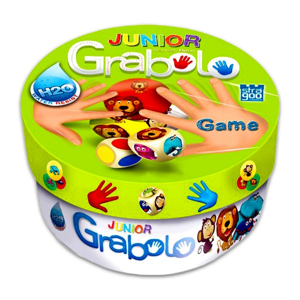 A jól ismert Grabolo társasjáték Junior változata. Felhőtlen szórakozás az egész családnak. Csak a legjobb szemű és leggyorsabb kezű játékos nyerhet! A dobókockák határozzák meg, hogy melyik szám és színkombinációra kell villámgyorsan lecsapni.