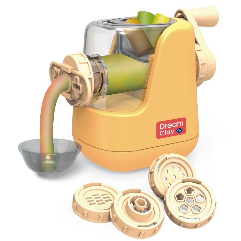 - 1 db játék gyurmagép: Ez az eszköz minden szükséges funkcióval rendelkezik ahhoz, hogy a gyurma finomságokat elkészítse és díszítse.