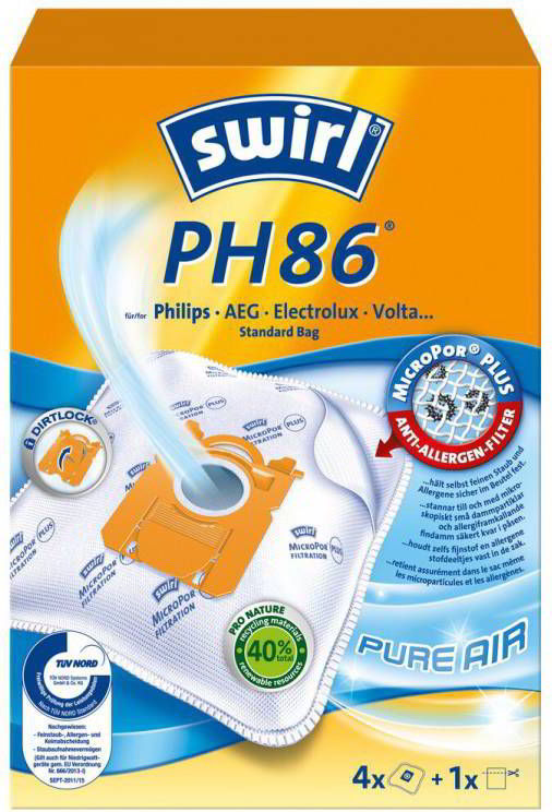 A TÜV TÜV NORD, egy független vizsgáló laboratórium által hitelesített Swirl® MicroPor® Plus minőségbiztosítási rendszer megvizsgálta és megerősítette a finom por, allergének és baktériumok szűrését, valamint a Swirl® MicroPor® Plus porszívó porzsákok porfelszívó képességét. Ez vonatkozik az alacsony teljesítményű készülékekre is, a 666/2013-I EU rendelettel összhangban.