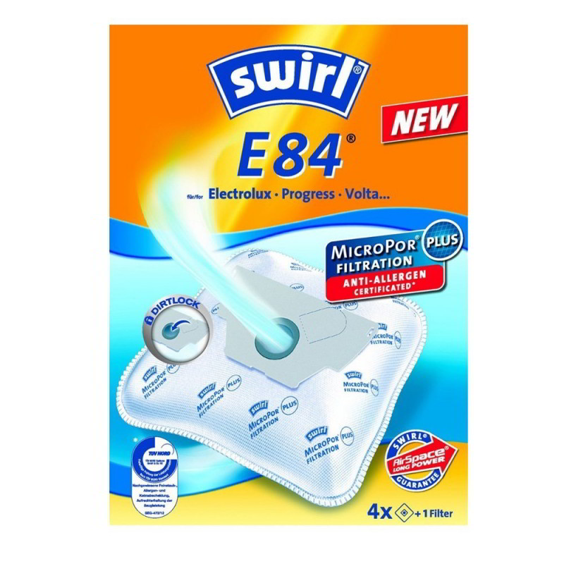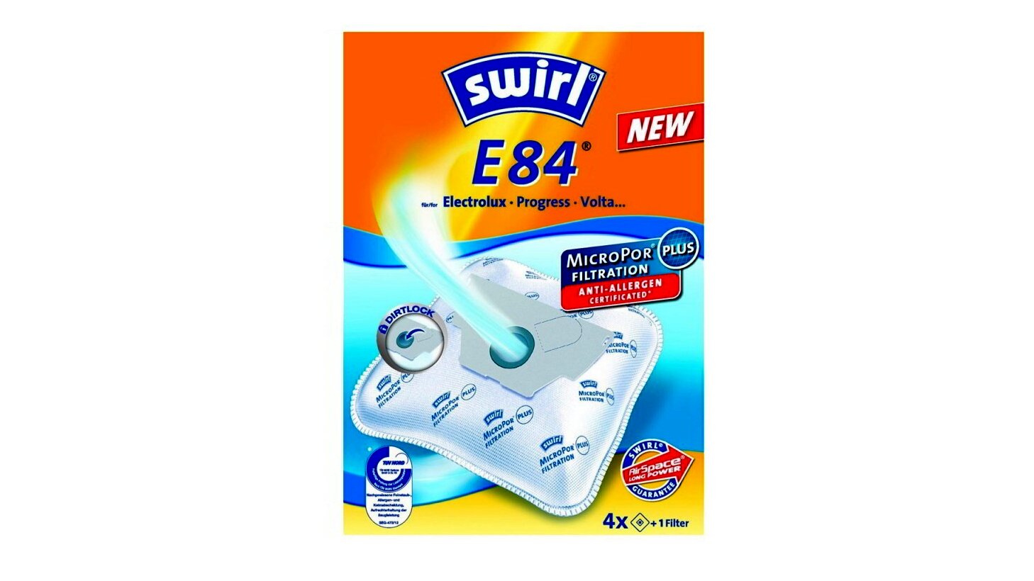 Porzsák az E84 porszívókhoz a Swirl-től. A készlet 4 darabot és 1 szűrőt tartalmaz.