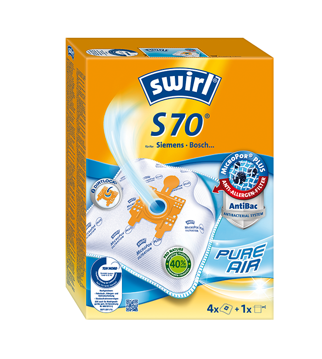 A környezetvédelem érdekében a Pro Nature pecsétet tartalmazó Swirl® porszívózsákok 40% -ban újrahasznosított anyagból és megújuló nyersanyagokból állnak.