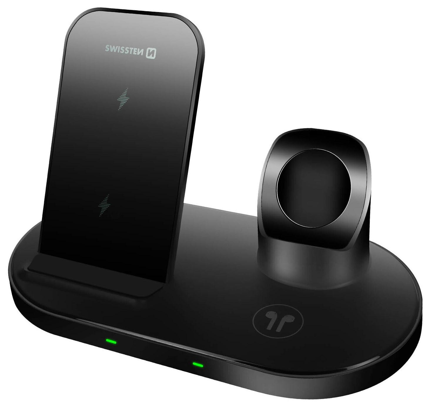 Swissten 3 az 1-ben Vezeték nélküli töltő okostelefon, Applewatch és Airpod töltéséhez 15W összteljesítménnyel.