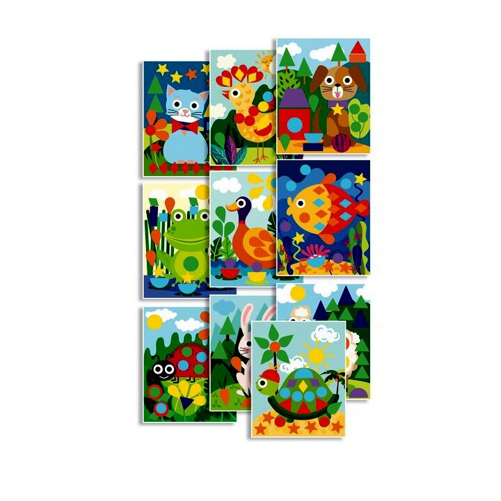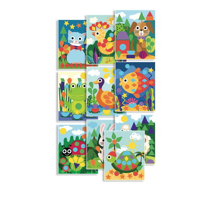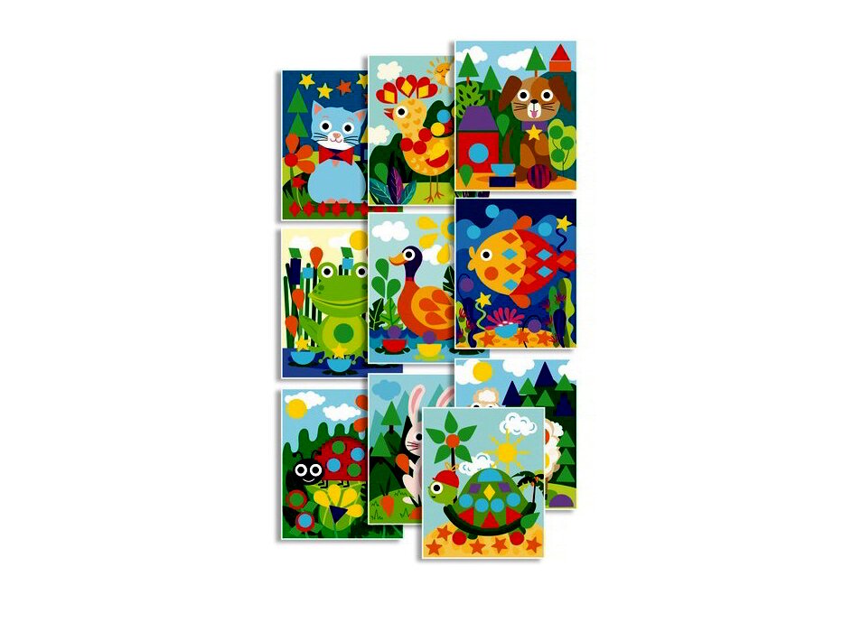 A gyerekeknek mindössze annyi a dolguk, hogy beragasszák a matricákat a megfelelő helyre. Végeredményként színpompás, állatos képeket kapnak.