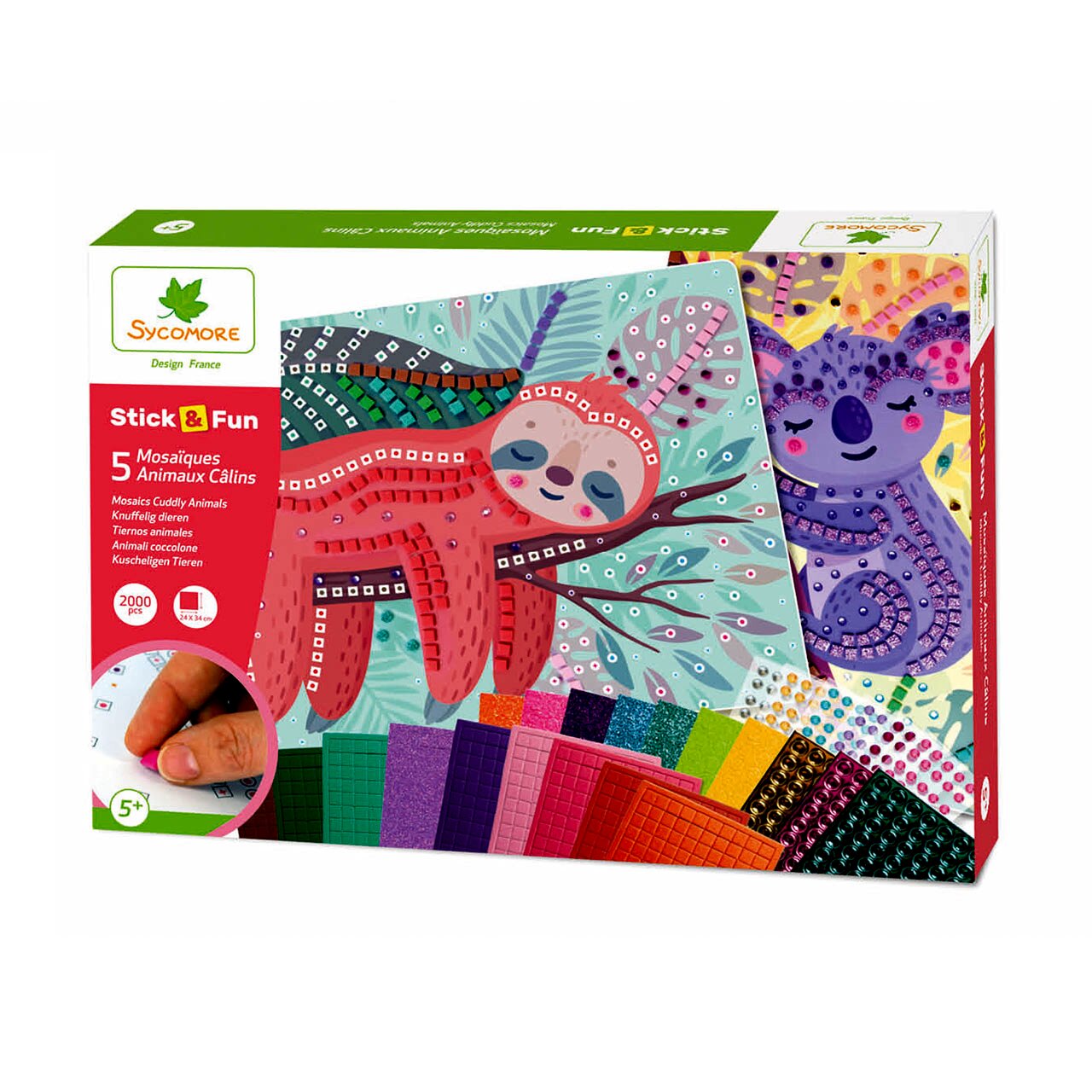 Ébreszd fel a benned rejlő művészt a Sycomore Stick 'n Fun Mozaikkép-készítő - Ölelnivaló állatok szettel, és hozd létre saját gyönyörű alkotásaidat!