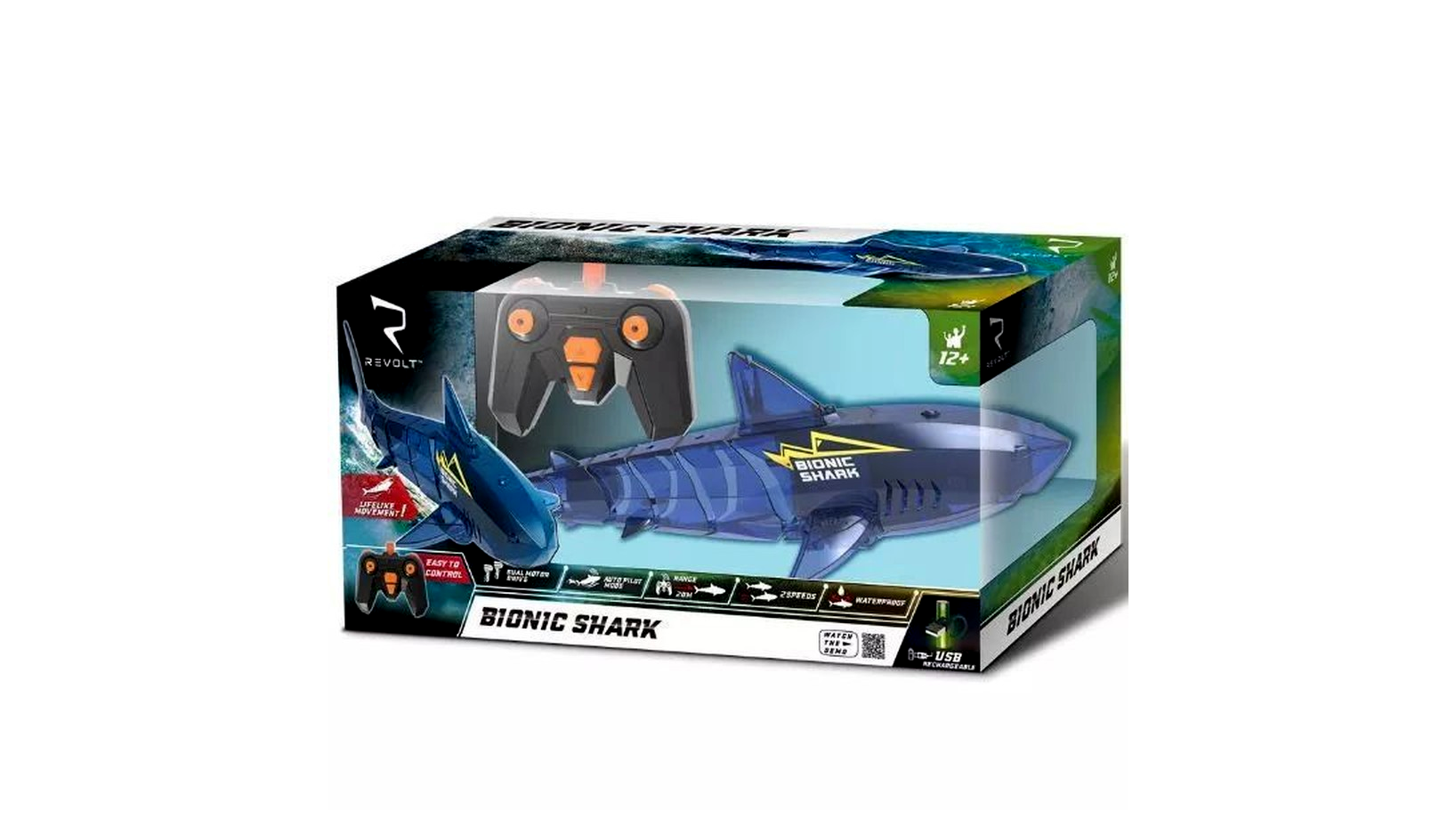 - Komplett irányítás: Az előre, hátra és oldalirányú mozgásokkal a cápa minden irányban könnyedén manőverezik.