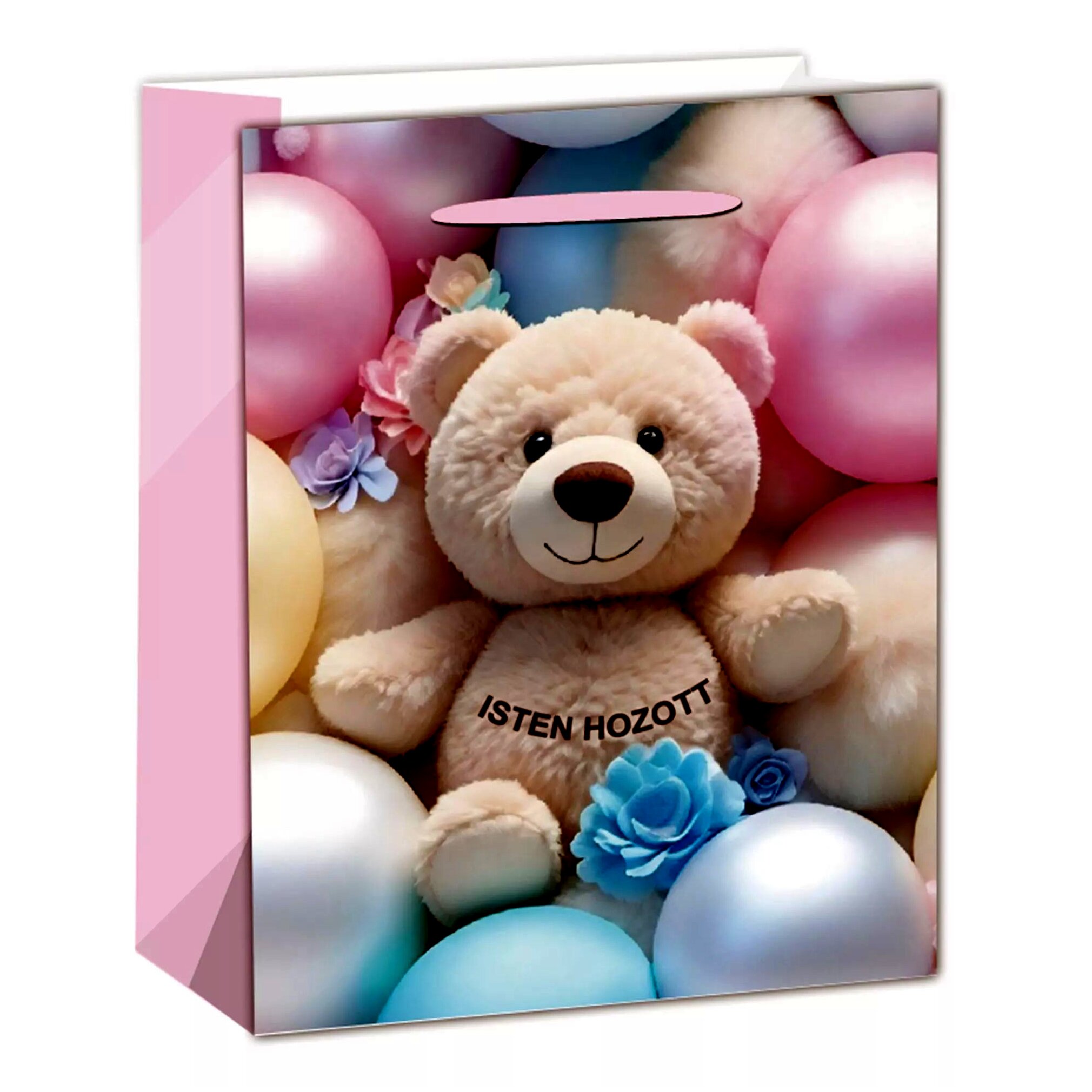 Vidám Maci Lufikkal Mintás Ajándéktasak