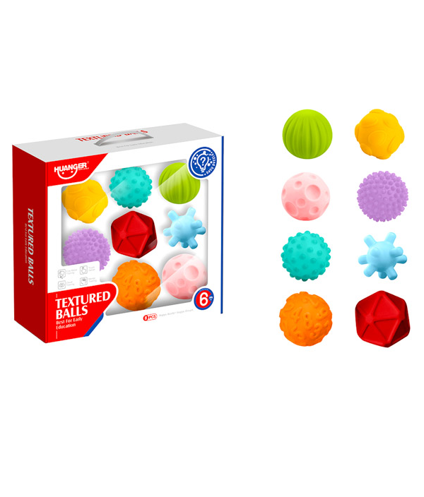 A tapintás és az érzékelés fejlesztése már egészen fiatal korban elkezdhető a szenzoros tapintásfejlesztő labdák 8 darabos szettjével. Ezek az élénk színű és különböző mintájú labdák lehetővé teszik a babák számára, hogy játék közben fejlesszék érzékszervi képességeiket.
