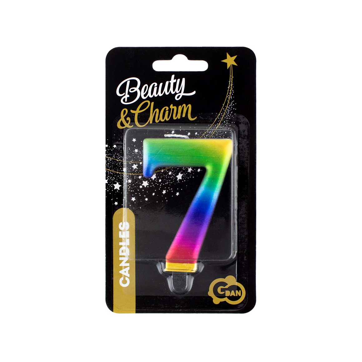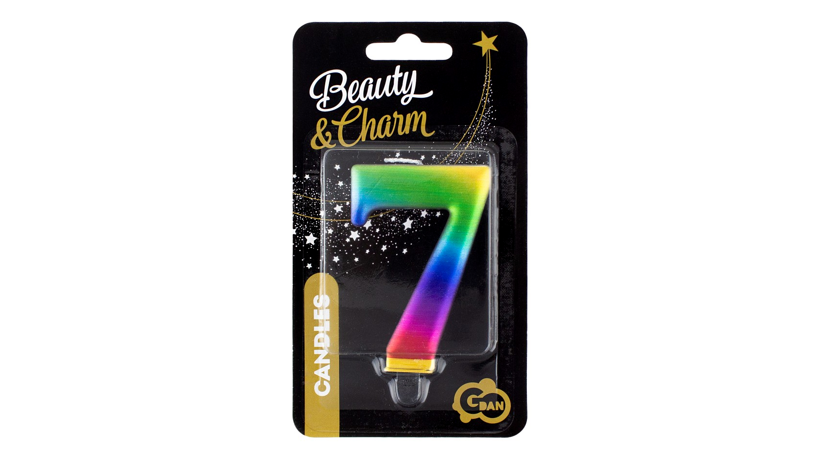 A varázslatos szivárvány színben pompázó, 7-es számot ábrázoló születésnapi gyertya a legszebb kiegészítője lehet a buliknak ha valami különlegességre vágyunk. Mérete: 8 cm.