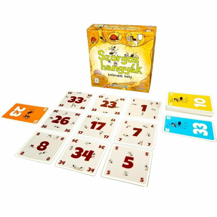 A Szorgos hangyák társasjátékban a legszorgosabb játékos lesz a nyertes. Versenyezzetek a hangyakártyákért, gyűjts össze 7 különböző vagy 5 ugyanolyan színű hangyakártyát!