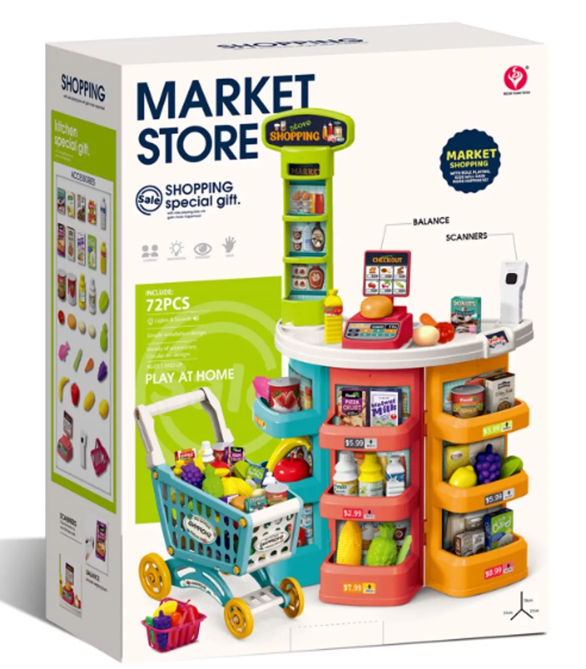 Ez a játékszett valósághű bolti élményt nyújt a gyerekeknek. A 72 darabos készlet tartalmaz mindent, ami egy élelmiszerüzlet működtetéséhez szükséges, beleértve a pénztárgépet, kocsit és különféle élelmiszereket. A gyerekek eljátszhatják, hogy bevásárolni mennek, és közben fejlődik a szociális készségük és képzelőerejük.
