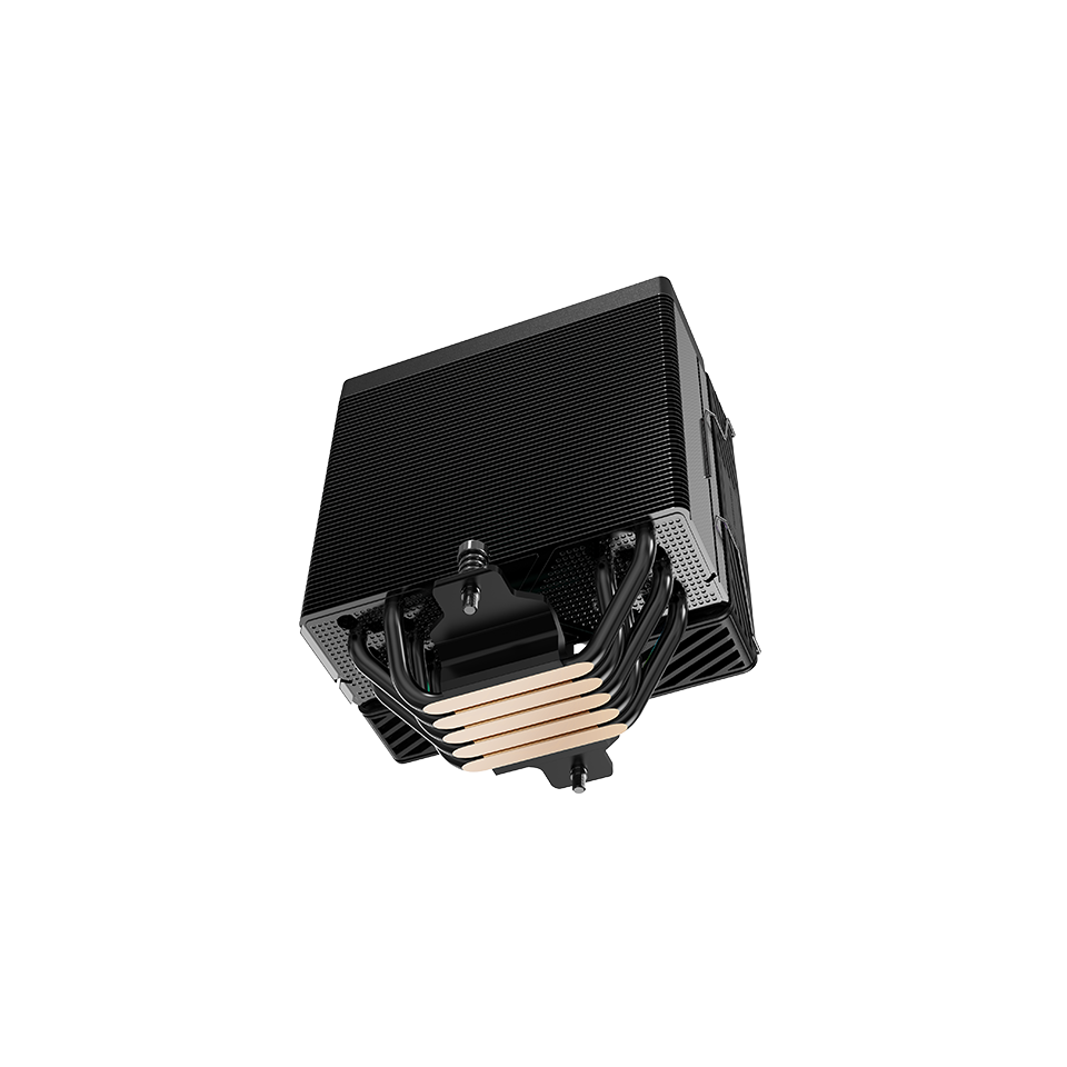 A masszív réz talp közvetlenül a processzor hőjét vezeti el az alumínium lamellák irányába, amelyeket a ventilátor intenzív légáramlása hűt. Az 5 darab hőcső optimalizált elrendezésének köszönhetően a hőelosztás egyenletes, így a CPU hosszabb ideig képes stabil órajeleken működni, turbó mód használata közben is.
