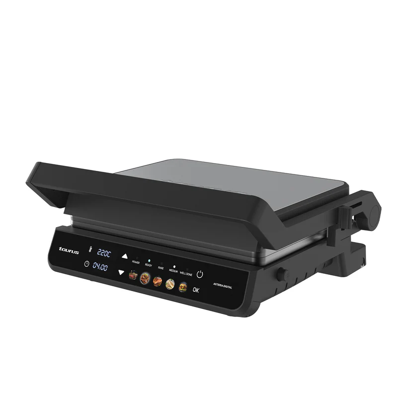 A Taurus Asteria Digital 2 az 1-ben elektromos grillsütővel gyorsan, tisztán és pontosan készíthetők a kedvenc grillezett fogások – a véres steaktől a ropogósra pirult panini szendvicsekig. A nagy teljesítmény, a digitális vezérlés és a praktikus, kivehető grilllapok ideális társává teszik a mindennapi főzésben.