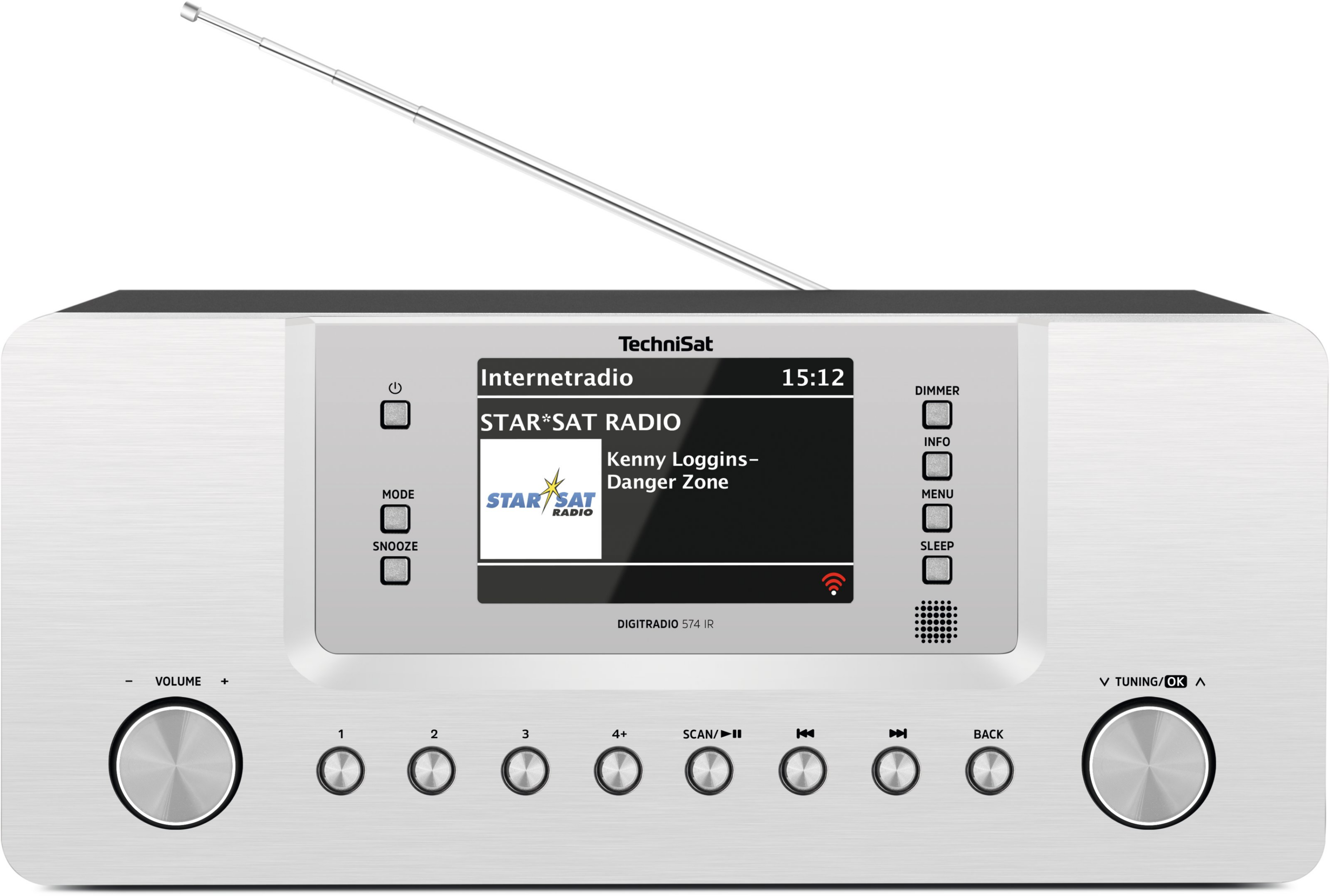 A DIGITRADIO 574 IR egy helyhez kötött internetes sztereó rádió, amellyel számos forrásból tud zenét lejátszani. Számos DAB+ és FM állomás mellett több ezer internetes rádióállomáshoz férhet hozzá a világ minden tájáról. Minden vételtípushoz 20 választott állomást menthet kedvencként, és így bármikor gyorsan és egyszerűen kiválaszthatja őket. Ezzel a digitális rádióval azonban nem csak a rádiórajongók érik meg pénzüket. A Bluetooth audio streamingnek köszönhetően a DIGITRADIO 574 IR azokat is boldoggá teszi, akik kedvenc zenéiket vagy podcastjaikat elmentették okostelefonjukra vagy zenei szolgáltatásra. Egyszerűen válassza ki a kívánt tartalmat, streamelje azt a DIGITRADIO 574 IR-re, és élvezze az erőteljes sztereó hangzást. Szintén praktikus: USB-n keresztül zenét játszhat le külső USB adathordozóról, vagy csatlakoztathat USB-kapcsolattal rendelkező eszközöket, mint pl. töltse fel okostelefonját. A 4 hüvelykes, szabályozható színes kijelző az elegáns, lineáris készülék előlapjába van ágyazva, és megmutatja a műsor- és dalinformációkat, valamint az időt. A digitális rádió kényelmesen kezelhető az előlapon található forgatógombokkal, a mellékelt távirányítóval vagy a TechniSat CONNECT alkalmazással.