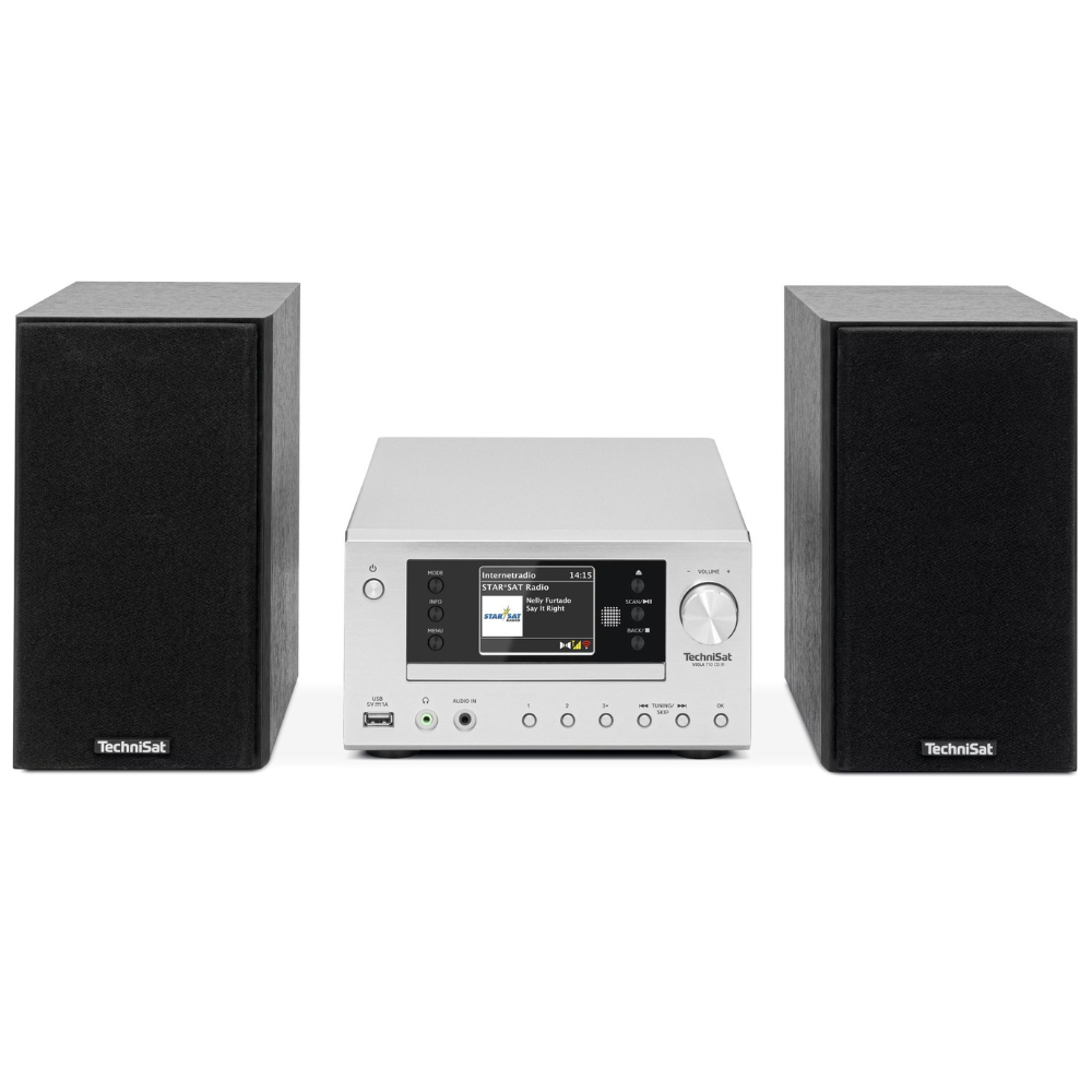A Technisat ezüst-fekete mikrorendszer elegáns formatervezéssel és kimagasló hangminőséggel kínál teljes körű zenei élményt, legyen szó rádióról, CD-ről, internetes streamről vagy Bluetooth-on érkező tartalmakról. Kompakt mérete ellenére erőteljes, mégis kifinomult hangzást biztosít, miközben könnyen kezelhető 2,8"-os színes TFT kijelzővel és sokoldalú vezérlési lehetőségekkel rendelkezik.