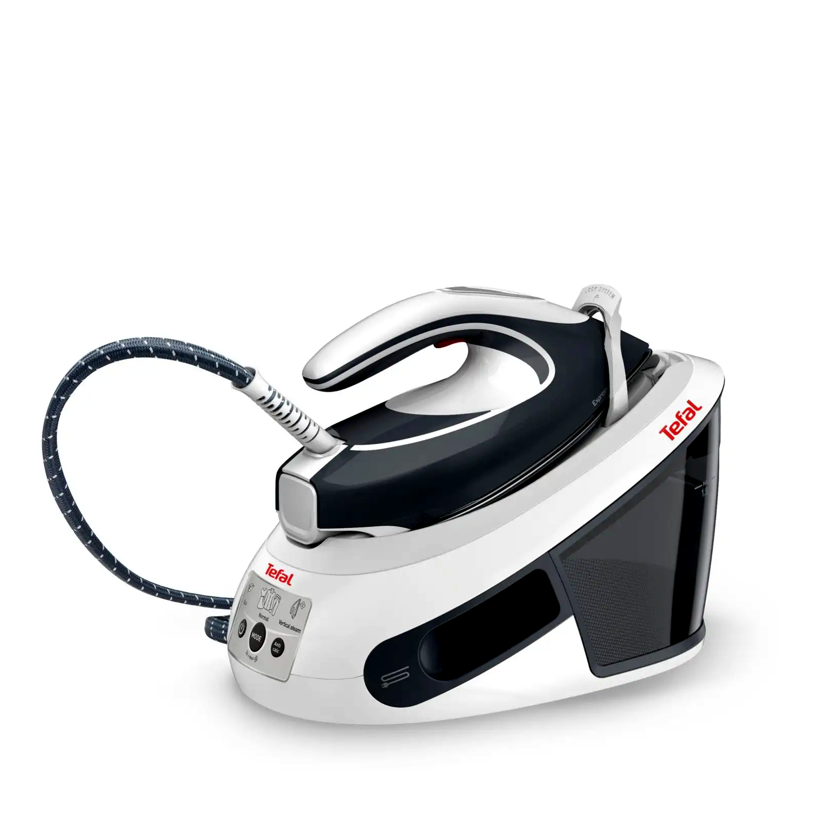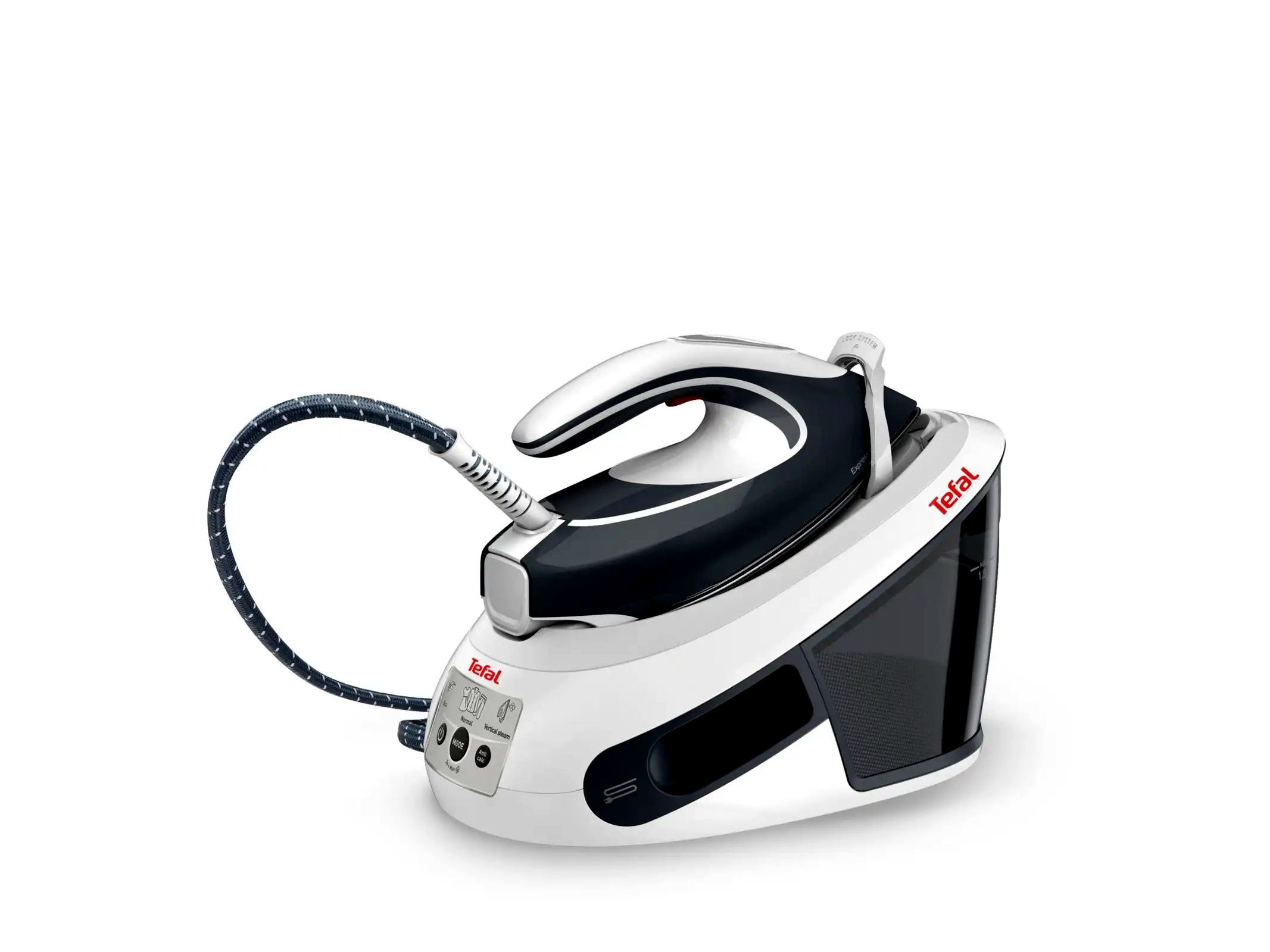 Nagyméretű, 1,8 literes levehető víztartály. Vasalás közben bármikor feltölthető.